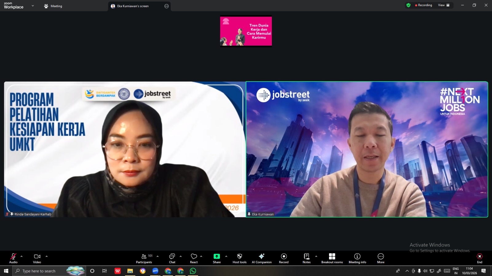 Pelatihan berlangsung intensif dengan rangkaian materi yang terstruktur. Peserta mendapatkan pembekalan mengenai penyusunan CV dan portofolio profesional, simulasi wawancara kerja, pengembangan soft skills, serta pengenalan tren industri 4.0. Setiap sesi disusun secara aplikatif, menghadirkan pengalaman langsung yang relevan dengan proses rekrutmen dan tuntutan dunia kerja modern.
