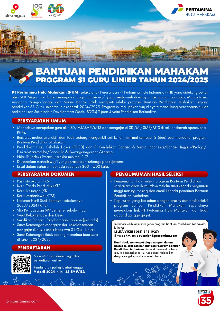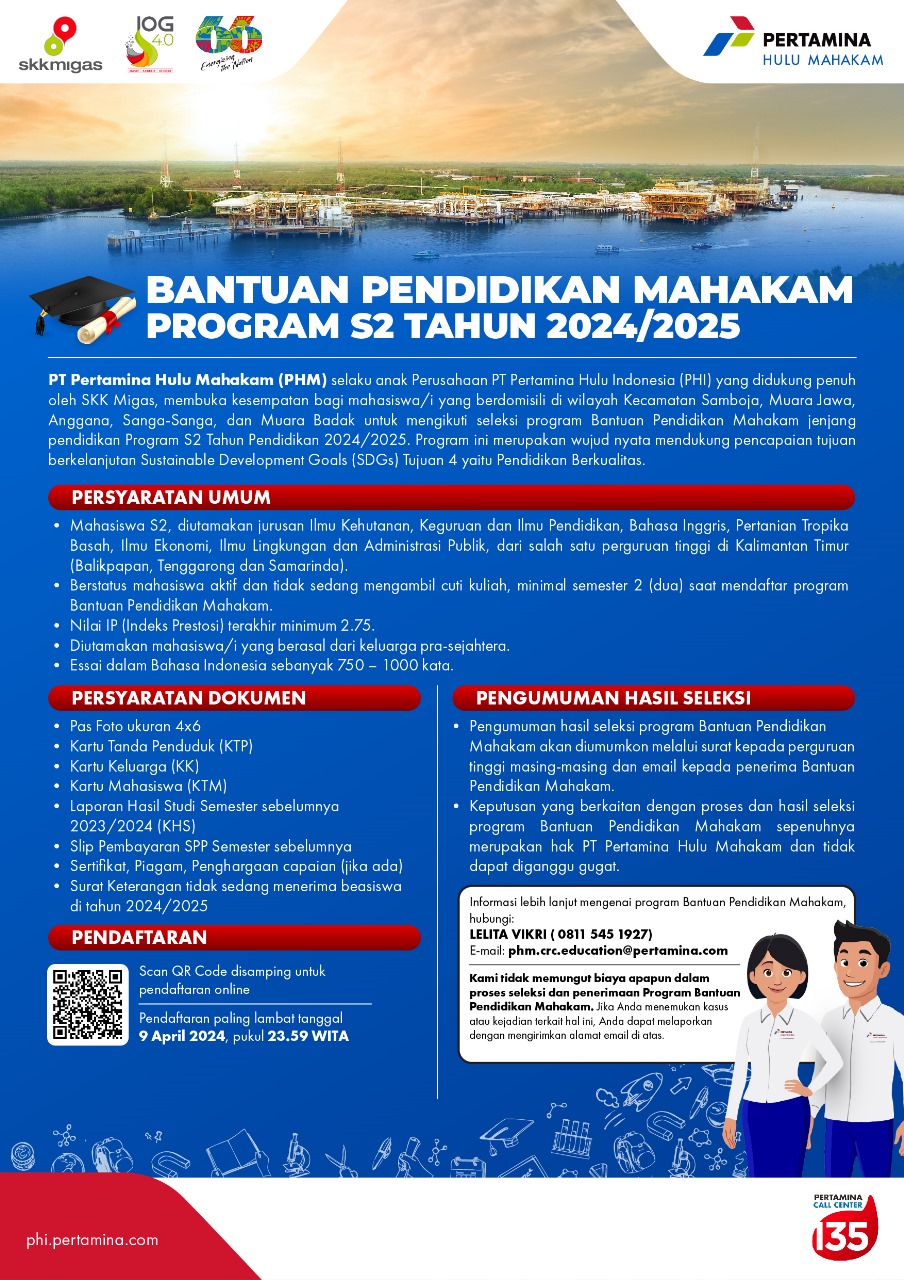 BEASISWA SKK MIGAS Bantuan Pendidikan Mahakam Program D3/D4/S1 tahun 2023/2024