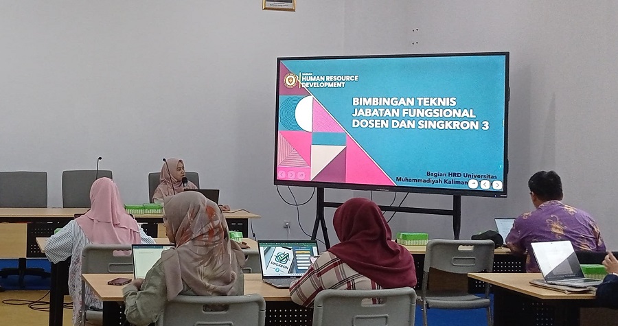 Bagian Human Resource Development (HRD) Universitas Muhammadiyah Kalimantan Timur (UMKT) menyelenggarakan kegiatan Bimbingan Teknis Jabatan Fungsional Dosen dan pengenalan sistem Sinkron 3 sebagai bagian dari upaya peningkatan kapasitas dosen dalam pengelolaan jenjang karier akademik.