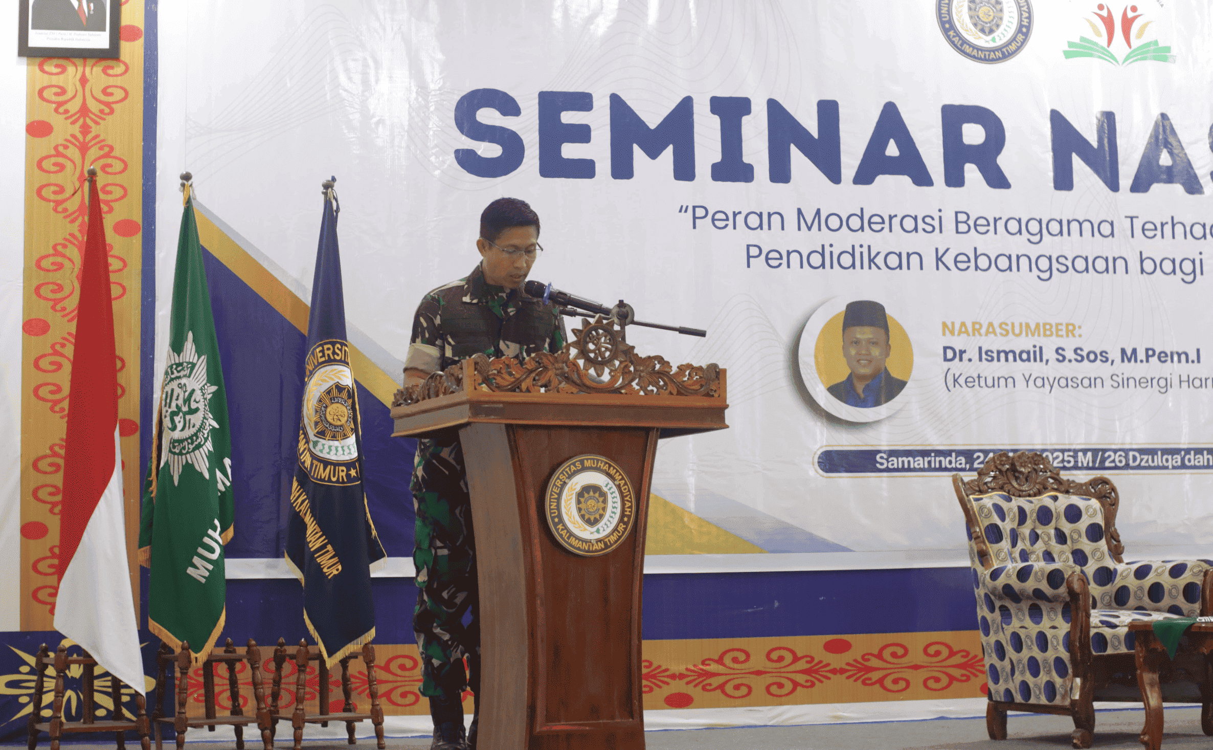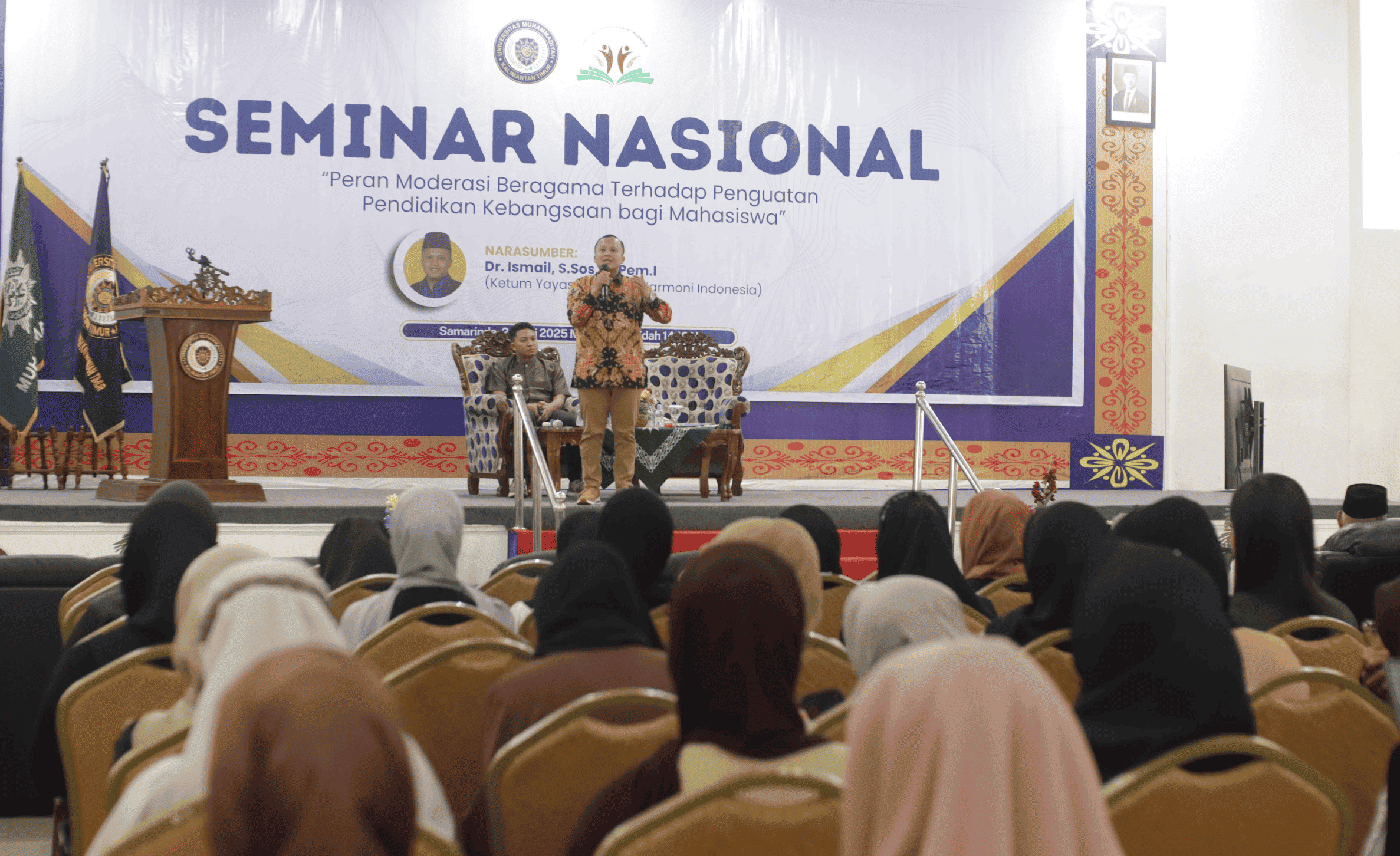 umkt.ac.id, Samarinda - Yayasan Sinergi Harmoni Indonesia menggaet Universitas Muhammadiyah Kalimantan Timur (UMKT) dalam penyelenggaraan Seminar Nasional yang bertema “Peran Moderasi Beragama terhadap Penguatan Pendidikan Kebangsaan bagi Mahasiswa”, Sabtu (24/5/2025). Kegiatan ini berlangsung di Aula UMKT dan dihadiri oleh mahasiswa dari berbagai program studi.