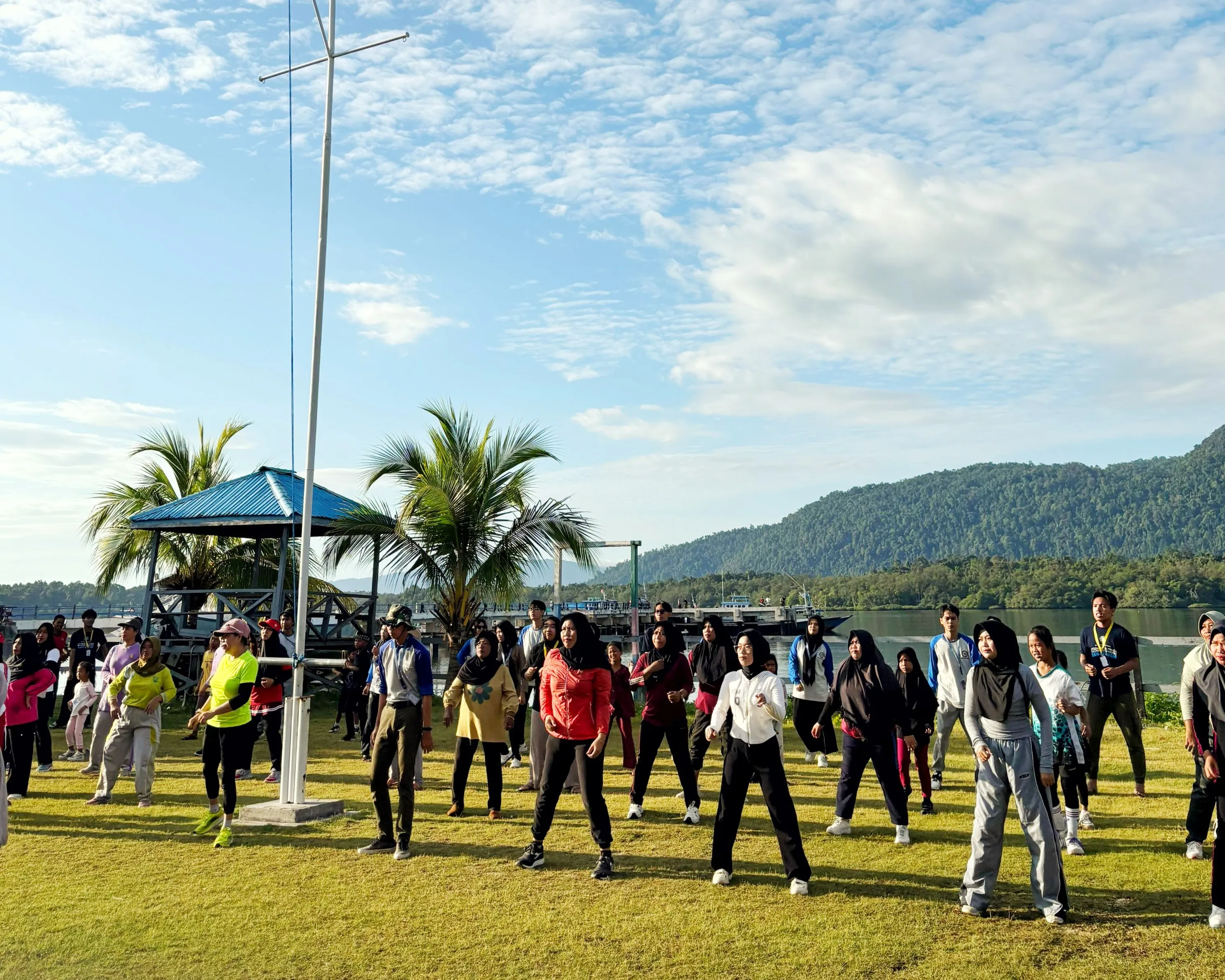 Senam Bersama Masyarakat dan Koordinasi dengan POS TNI-AL: KKN-PMM UMKT Bangun Sinergi di Teluk Sulaiman