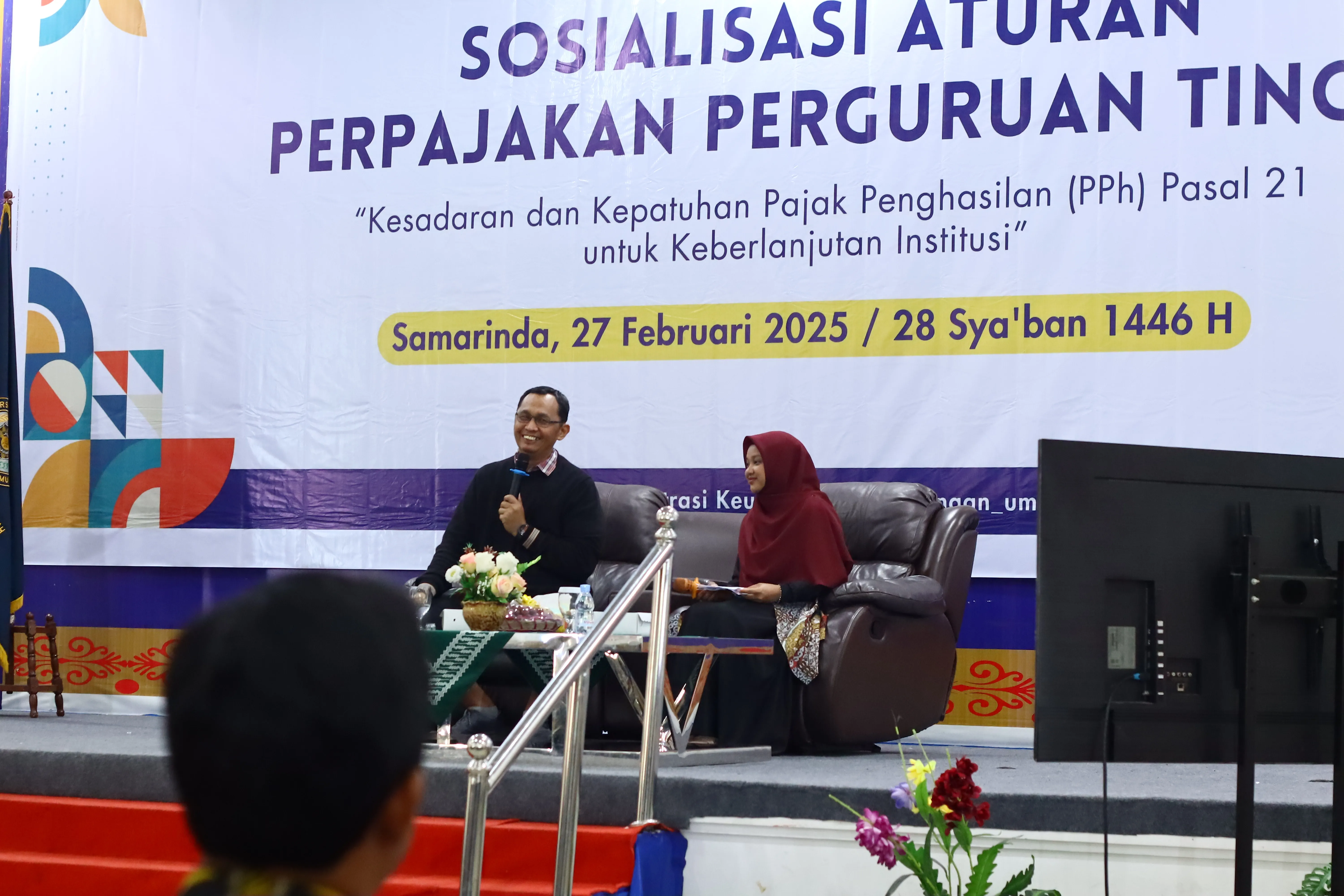 Kamis, 27 Februari 2025 Biro dan Bagian Administrasi Keuangan Universitas Muhammadiyah Kalimantan Timur menggelar kegiatan Sosialisasi Aturan Perpajakan Perguruan Tinggi dengan tema "Kesadaran dan Kepatuhan Pajak PPh 21 untuk Keberlanjutan Institusi". Pada kesempatan kali ini Biro dan Bagian Administrasi Keuangan mengundang bapak Ikhwan Latief, S.E untuk menjadi Narasumber yang relevan dengan bidang beliau yakni penyuluh pajak di Direktorat Jenderal Pajak KPP Pratama Samarinda Ulu. Tujuan dilaksanakannya kegiatan ini adalah untuk meningkatkan pemahaman dan kesadaran seluruh civitas akademika mengenai kewajiban perpajakan yang berlaku, sehingga dapat mematuhi peraturan pajak dengan benar dan tepat waktu. Harapannya dapat Mendukung perencanaan keuangan yang lebih baik, meningkatkan efisiensi penggunaan anggaran, dan menjaga kredibilitas perguruan tinggi dalam memenuhi kewajiban perpajakan sesuai dengan peraturan yang ada.
