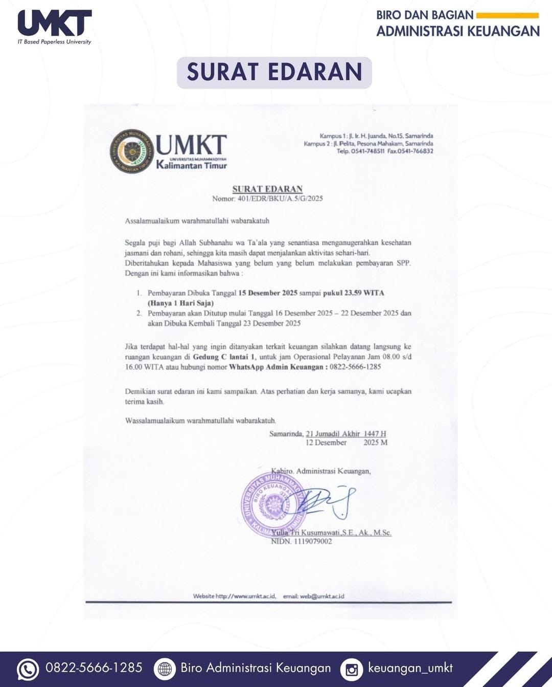 2. Pembayaran akan Ditutup mulai Tanggal 16 Desember 2025 – 22 Desember 2025 dan akan Dibuka Kembali Tanggal 23 Desember 2025