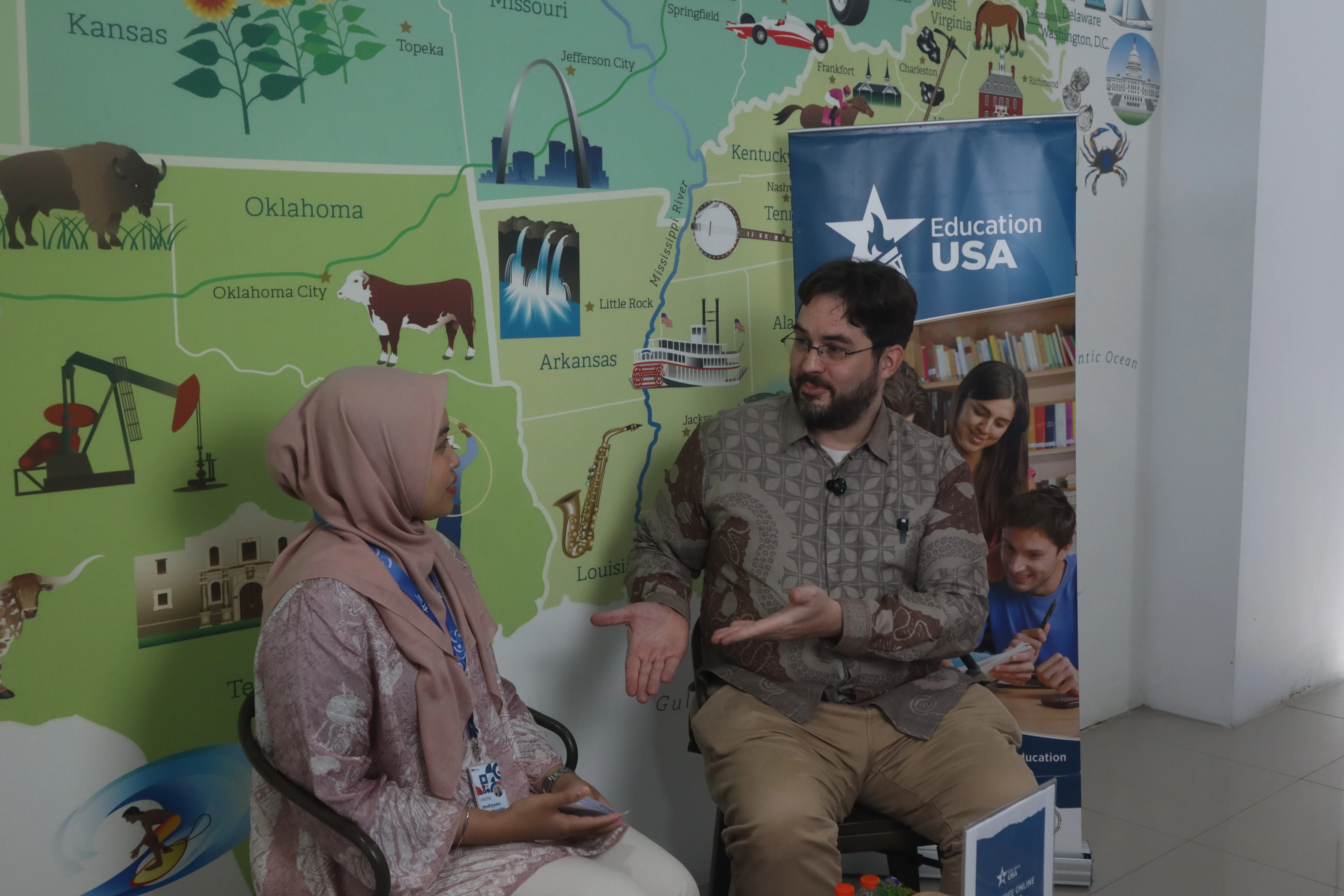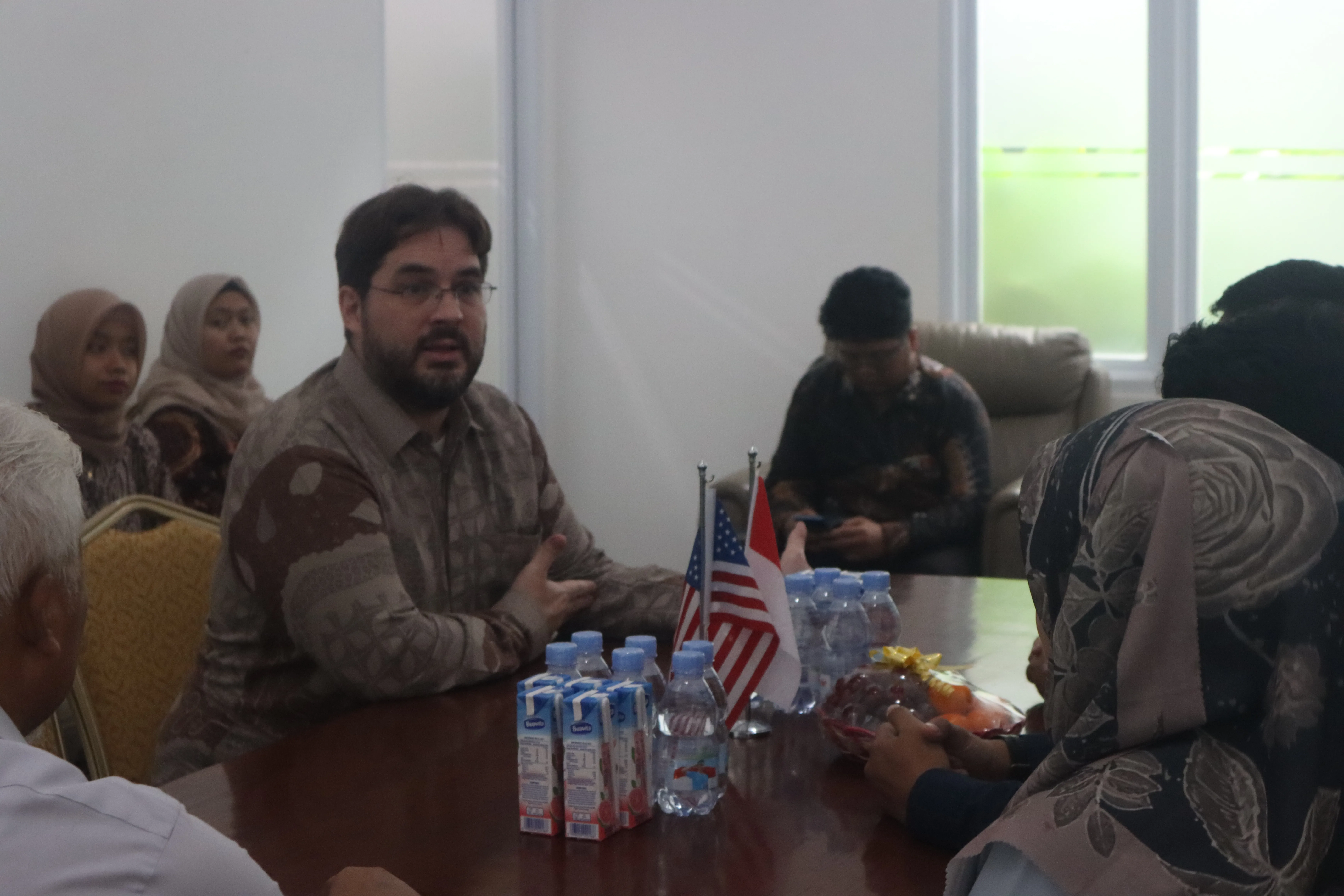 After discussing with the university leadership, John continued with a lunch agenda before visiting EducationUSA Samarinda located in Building G of UMKT. There, he conducted a podcast recording session and met with EducationUSA volunteers to discuss study opportunities in the United States and the active role of youth in educational diplomacy.