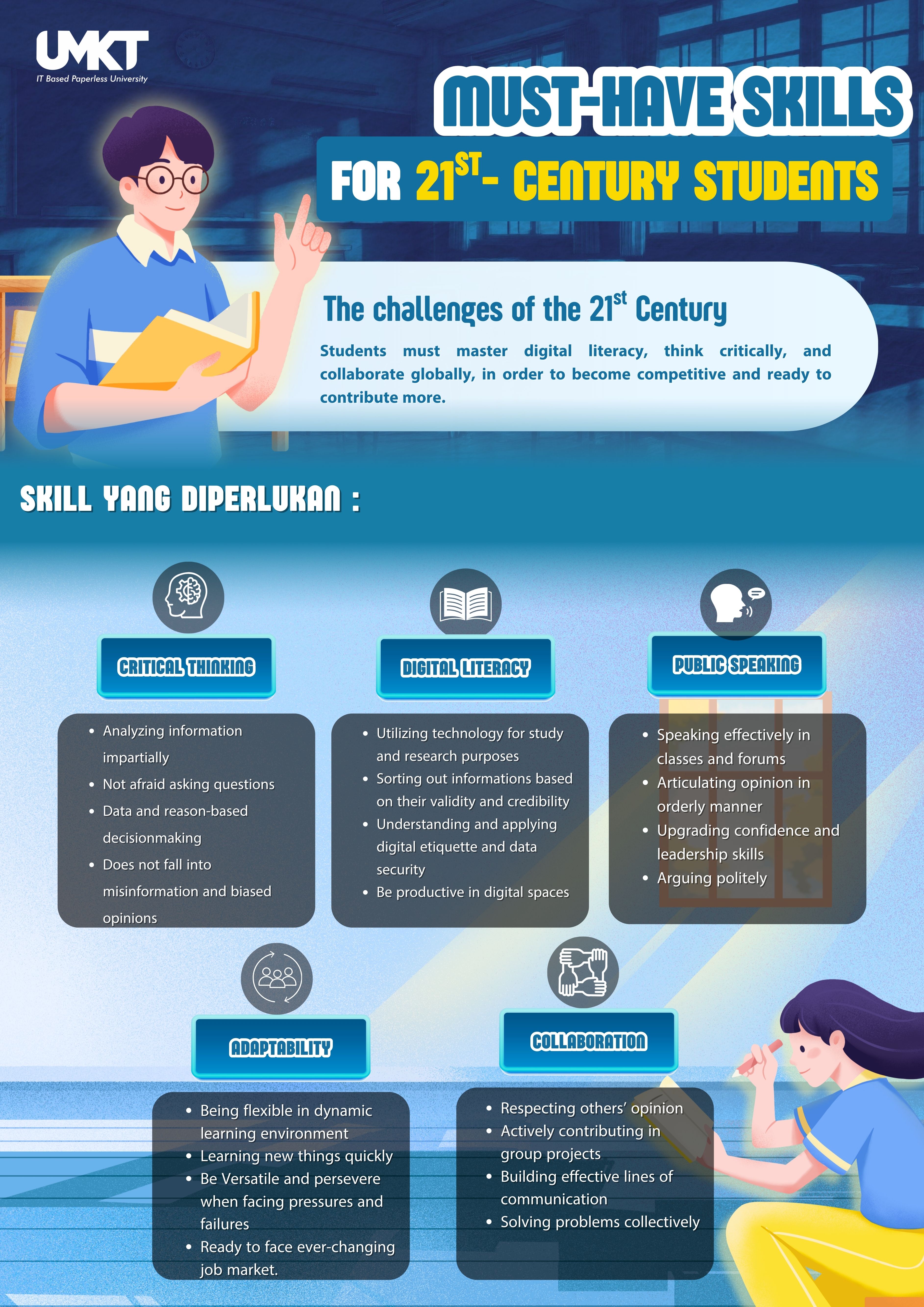 umkt.ac.id, Samarinda – In an era of rapid global transformation, academic excellence alone is no longer enough. The 21st century presents complex challenges that require the younger generation to master a multifaceted skill set—ranging from digital literacy and critical thinking to seamless collaboration across cultures and disciplines. These competencies are the bedrock for students to remain adaptive, drive innovation, and contribute meaningfully to a fast-evolving world.
