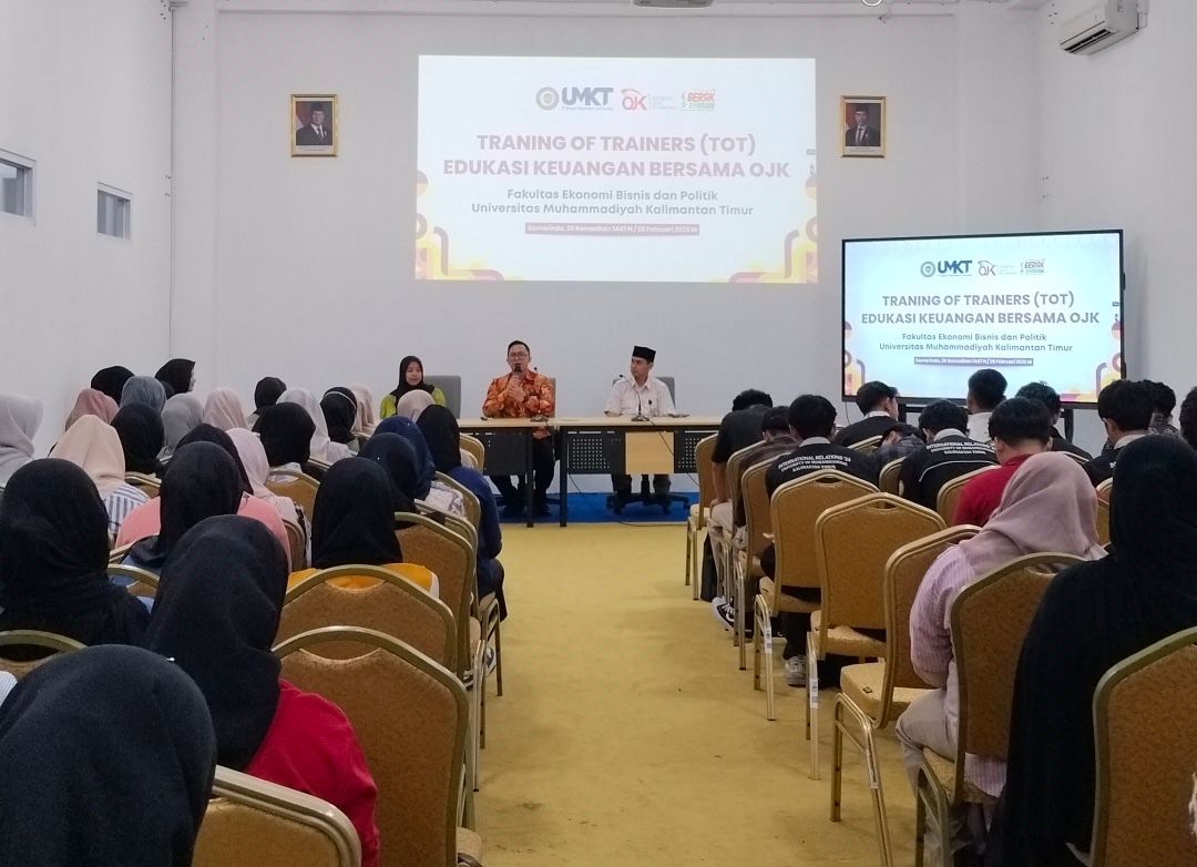 Fakultas Ekonomi, Bisnis, dan Politik Universitas Muhammadiyah Kalimantan Timur (UMKT) menyelenggarakan kegiatan Training of Trainers (ToT) Edukasi Keuangan bersama OJK pada 26 Februari 2026 di Gedung G Lt. 01 kampus UMKT. Kegiatan ini menghadirkan narasumber dari Otoritas Jasa Keuangan (OJK) Provinsi Kalimantan Timur dan Kalimantan Utara yang memberikan pemahaman kepada peserta mengenai pentingnya literasi dan inklusi keuangan, khususnya dalam perspektif keuangan syariah.