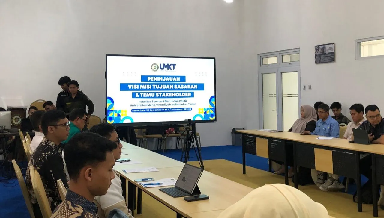 SAMARINDA – Pada Kamis, 9 Ramadhan 1447 H yang bertepatan dengan 26 Februari 2026, Fakultas Ekonomi, Bisnis, dan Politik (FEBP) Universitas Muhammadiyah Kalimantan Timur (UMKT) sukses menyelenggarakan agenda krusial: Peninjauan Visi, Misi, Tujuan, dan Sasaran (VMTS) serta Temu Stakeholder. Kegiatan ini berlangsung khidmat di Ruang Rapat Gedung Jenderal Sudirman Lantai 1, Kampus UMKT Samarinda dihadiri olleh berbagai perwakilan industri, akademisi, serta alumni yang telah sukses berkarier di berbagai bidang.