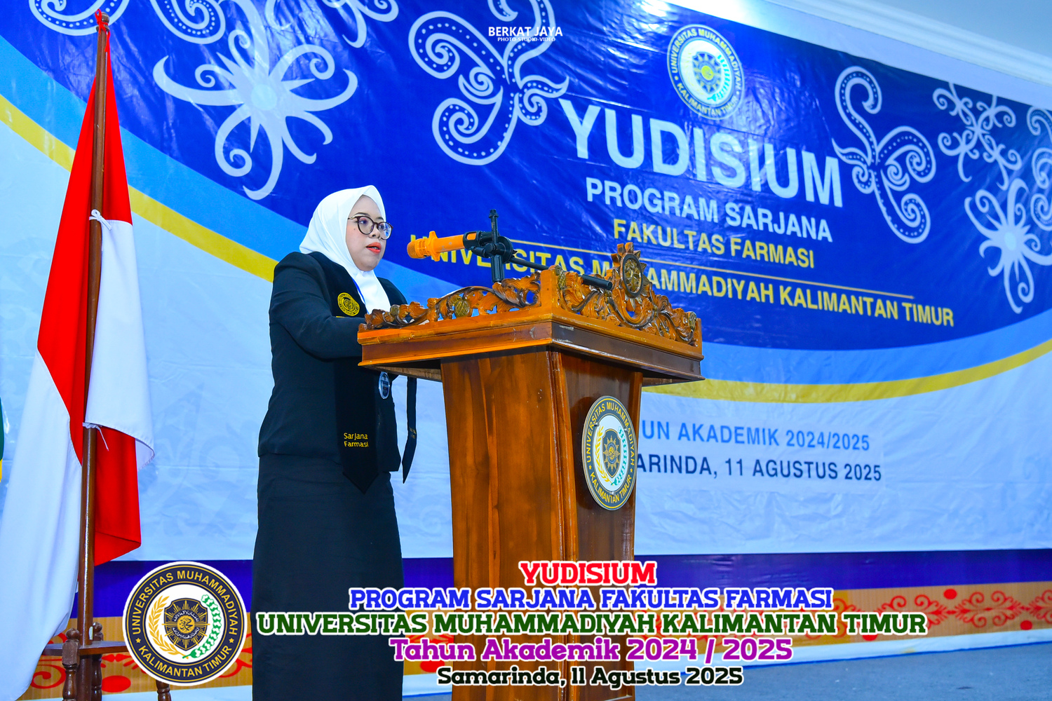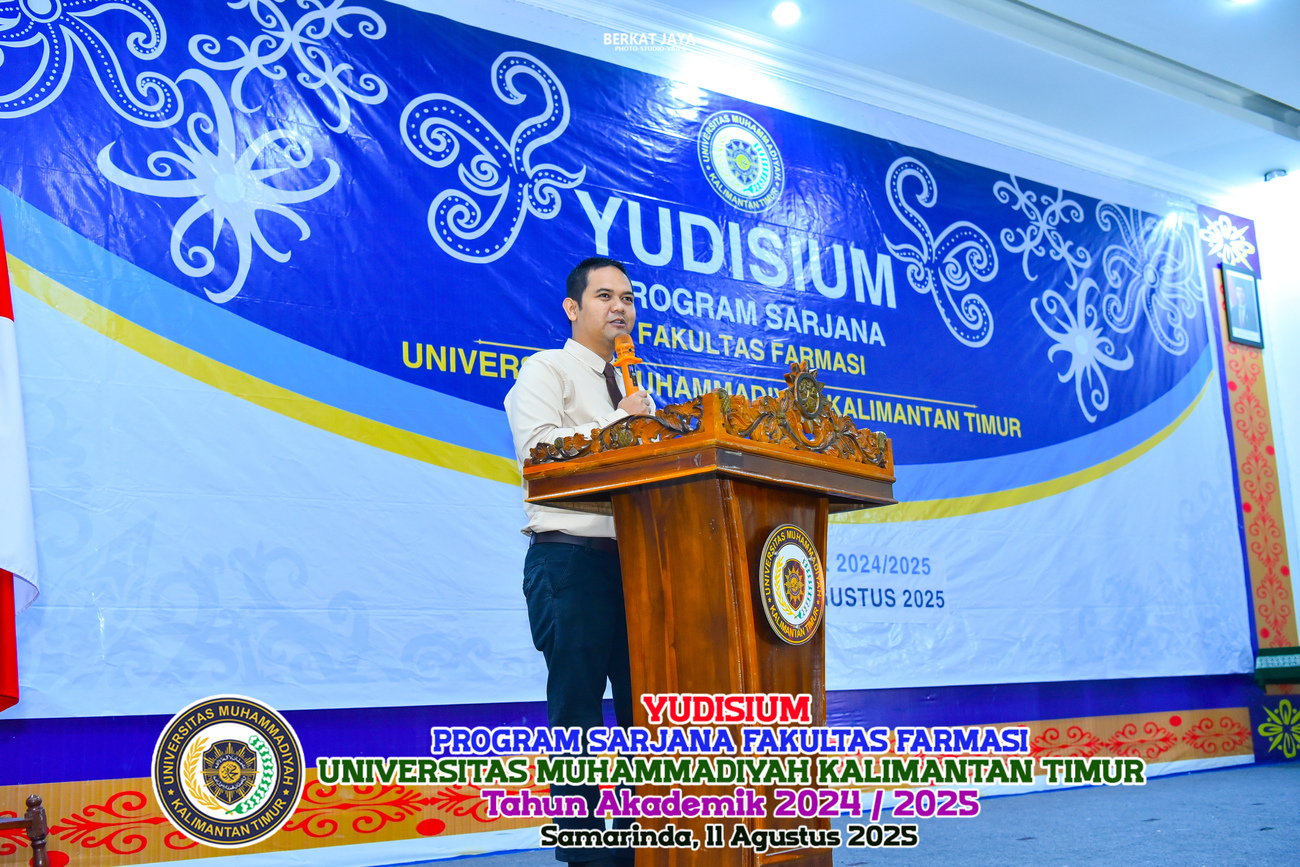 SAMARINDA– Fakultas Farmasi Universitas Muhammadiyah Kalimantan Timur (FF UMKT) melaksanakan Yudisium Program Sarjana Tahun Akademik 2024/2025 pada Senin (11/8/2025). Bertempat di Aula Lantai 4 Gedung E Kampus UMKT, sebanyak 85 mahasiswa Program Studi S1 Farmasi resmi dinyatakan lulus dab berhak menyandang gelar Sarjana Farmasi (S.Farm.).
