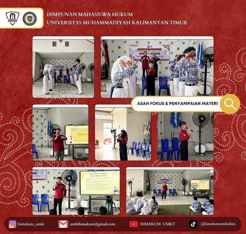 HImpunan Mahasiswa Hukum (HIMAKUM) Universitas Muhammadiyah Kalimantan Timur (UMKT) kembali melaksanakan program Goes To School, sebuah inisiatif edukasi dan pengabdian kepada masyarakat yang kali ini menyasar SMA Negeri 5 Samarinda. Kegiatan yang berlangsung pada Kamis, 18 Januari 2024, di Ruang Aula SMA Negeri 5 Samarinda ini mengusung tema “Cerdas dalam Bersosial Media di Era Gen Z.”