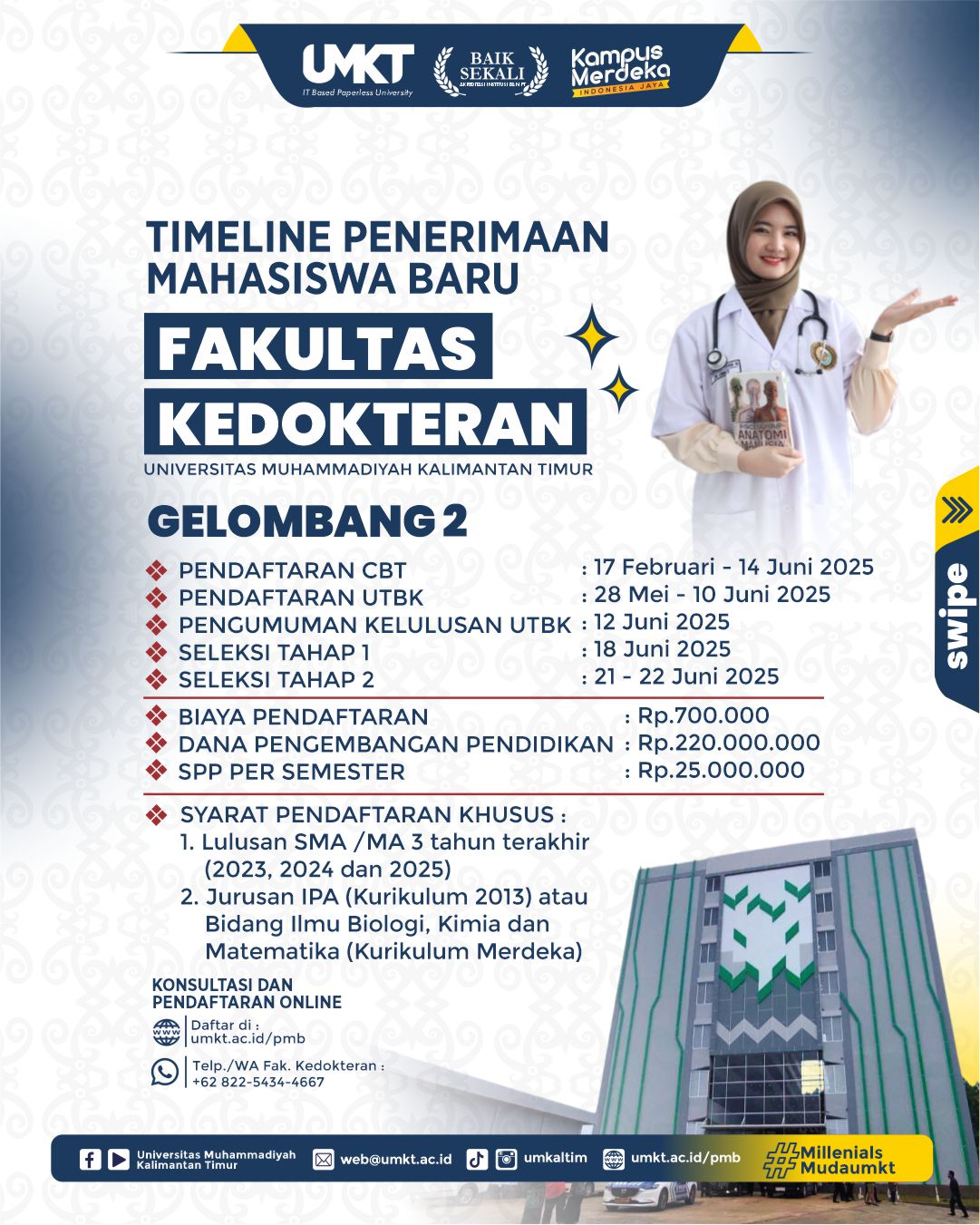 Penerimaan mahasiswa baru Kedokteran UMKT gelombang 2 telah dibuka dengan kuota 50 mahasiswa/i.