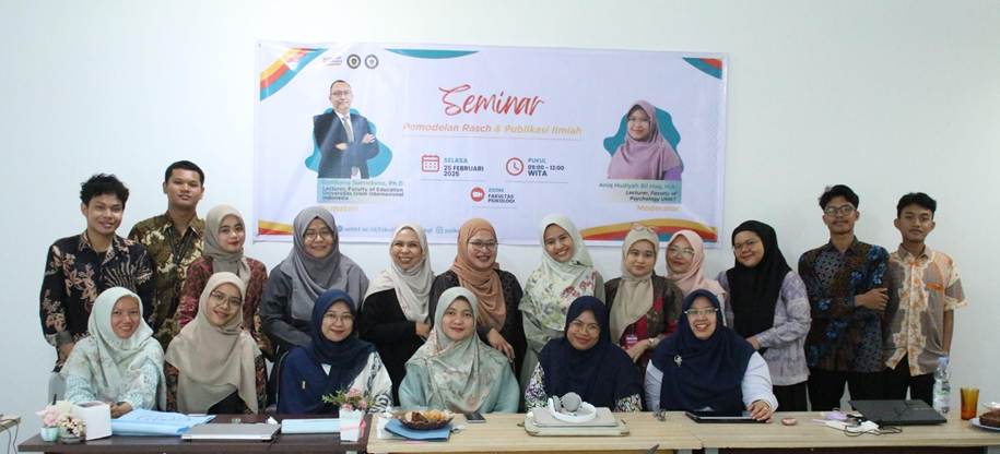 Pada Selasa, 25 Februari 2025 - Fakultas Psikologi Universitas Muhammadiyah Kalimantan Timur (UMKT) dengan sukses telah menyelenggarakan seminar dengan judul “Pemodelan Rasch dan Publikasi Ilmiah”. Kegiatan ini dilaksanakan secara luring yang bertempat di ruang program Studi Psikologi UMK serta melalui platform Zoom Meeting. Narasumber utama yang dihadirkan merupakan seorang yang ahli dalam bidang pengukuran psikometri, yaitu Bapak Bambang Sumintono, Ph.D., yang dikenal luas dalam penerapan Rasch Model di berbagai penelitian.