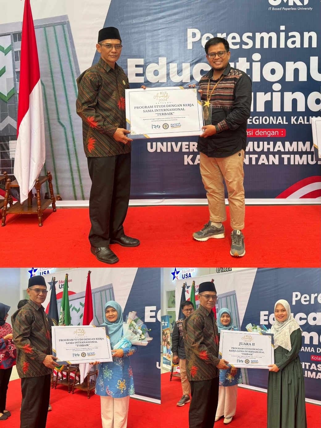 Samarinda - Universitas Muhammadiyah Kalimantan Timur (UMKT) melalui Kantor Urusan Internasional (KUI) dengan bangga mengucapkan selamat kepada para pemenang KUI awards 2024. Pada hari Kamis tanggal 19 bulan Desember tahun 2024, bertempat di Co-Working Space gedung Jenderal Sudirman Univerisitas Muhammadiyah Kalimantan Timur telah dilaksanakan acara pengumuman pemenang KUI Awards 2024. Penghargaan ini diberikan sebagai bentuk apresiasi atas dedikasi dan kontribusi luar biasa dalam pengelolaan kerja sama di lingkungan UMKT. Penilaian penghargaan ini berdasarkan Indikator Kinerja Utama (IKU) Direktorat Jenderal Pendidikan Tinggi, Riset dan Teknologi Indonesia yang telah diadopsi oleh Kantor Urusan Internasional UMKT. Sistem penilaiannya dirancang oleh TIM IT UMKT melalui platform Kerma My UMKT, sehingga fakultas dan program studi dapat memantau kinerja mereka secara real-time sebagai bahan evaluasi diri.