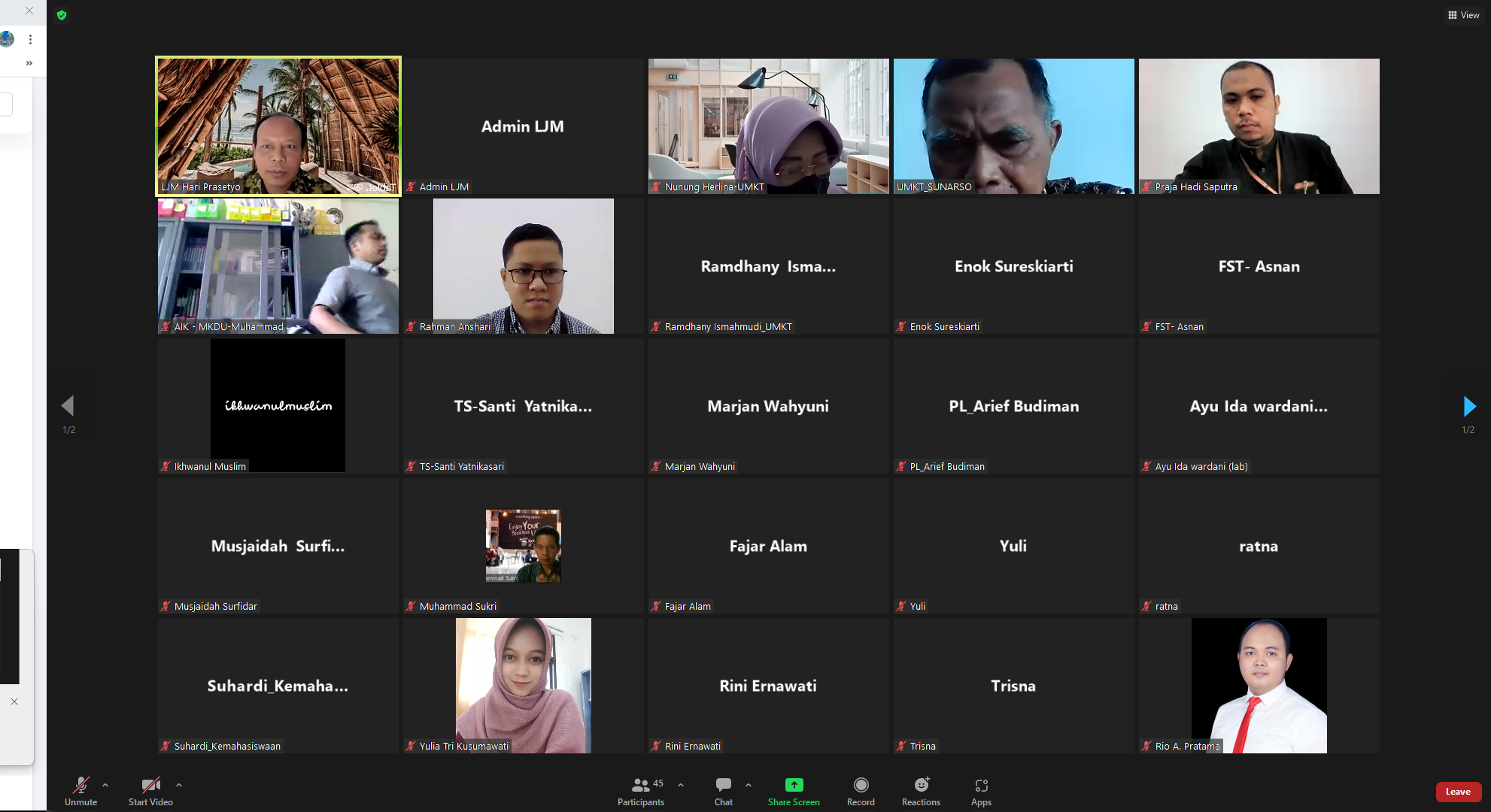 Pada hari Selasa, 23 Agustus 2022 tim audit keuangan internal sebagai bagian dari Lembaga Jaminan Mutu (LJM) melaksanakan persamaan persepsi audit keuangan Sistem Rencana Pengembangan Lembaga sebagai penguat dari Audit Mutu Internal (AMI). Pertemuan ini merupakan kelanjutan dari Sosialisasi Audit Keuangan dan Survey Kepuasan Pengguna. Persamaan persepsi ini dilakukan secara online melalui aplikasi Zoom yang dibuka oleh Bapak Sunarso, S.E., M.M selaku Ketua Sistem Pengendalian Internal (SPI) UMKT. Kemudian dilanjutkan dengan penjelasan terkait Persamaan Persepsi Auditor dan Auditi atas Instrumen Evaluasi SPI yang dijelaskan oleh Bapak Rahman Anshari, S.E., M.A selaku Kepala Bagian Pembendaharaan dan Keuangan Internal.