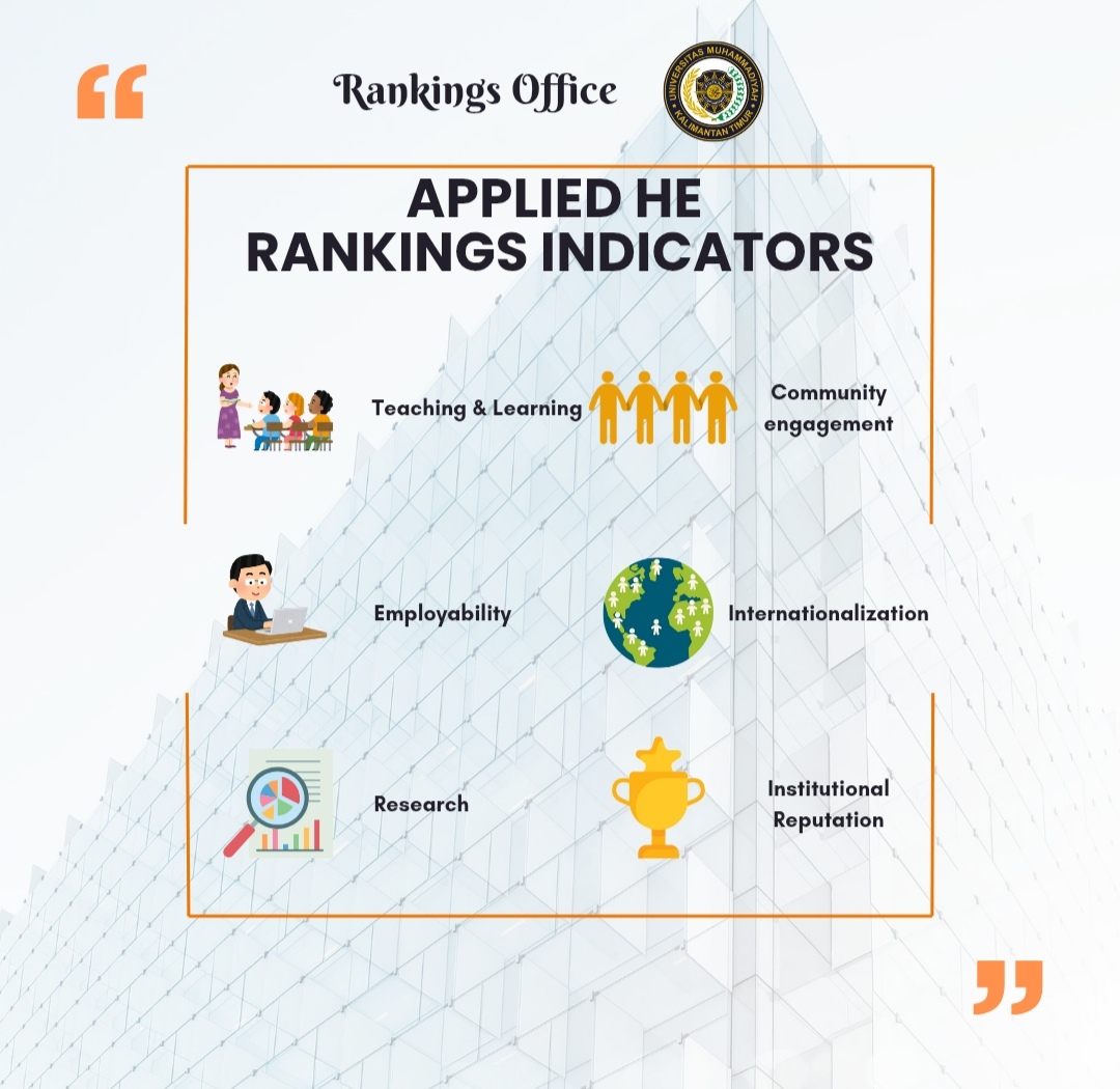 Masih banyak yang belum mengenal Pemeringkatan yang satu ini. AppliedHE merupakan Pemeringkatan yang mengukur akademik Dari berbagai indikator. indikator tersebut antara lain Proses belajar mengajar, fasilitas pendukung, hubungkan dengan Masyarakat, peluang alumni diterima oleh pengguna Lulusan, dan aplikasi inklisifitas dalam Pendidikan.