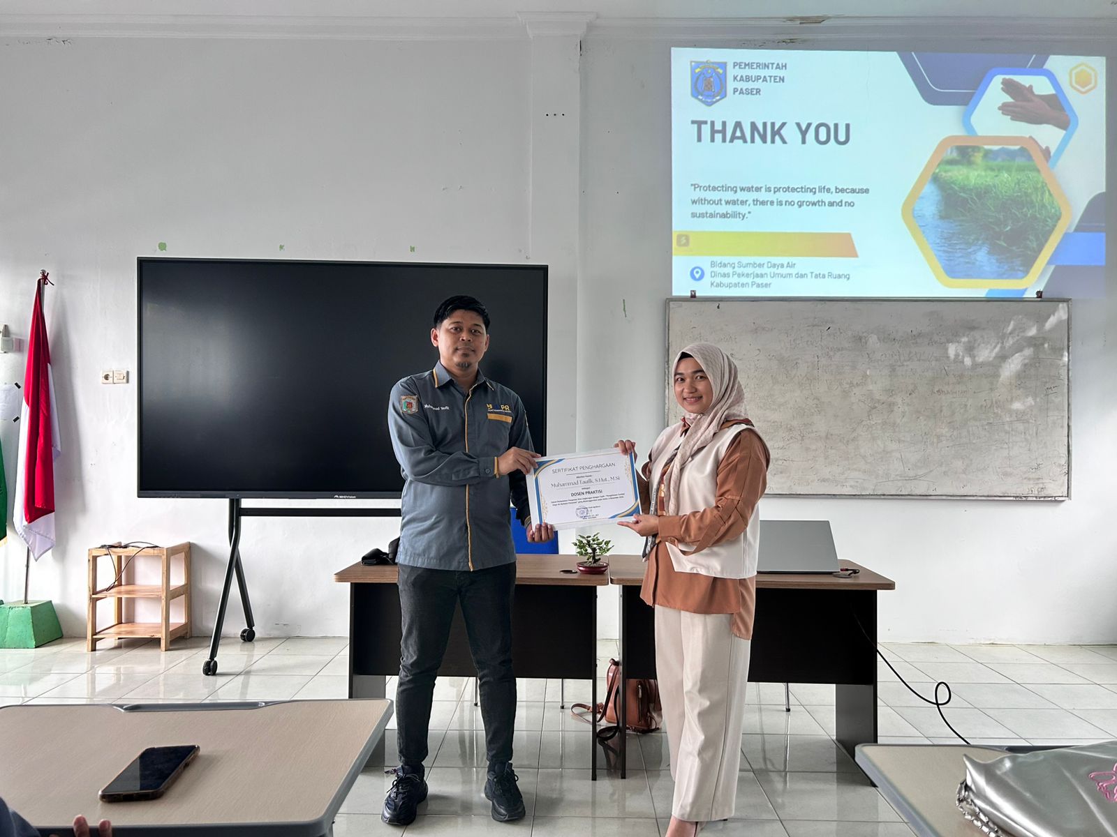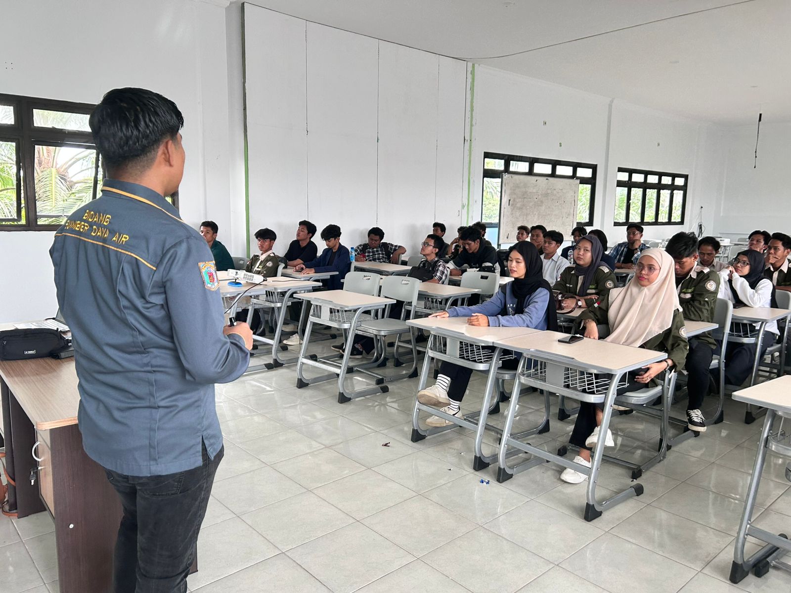 Mahasiswa diajak untuk berdiskusi mengenai studi kasus nyata, seperti pengelolaan air di kawasan urban dan pedesaan, serta implementasi teknologi digital dalam pemantauan kualitas air. Dengan gaya penyampaian yang interaktif, Muhammad Taufik, S.Hut., M.si berhasil menggugah antusiasme mahasiswa untuk lebih peduli terhadap isu lingkungan, khususnya air sebagai sumber daya vital bagi kehidupan.