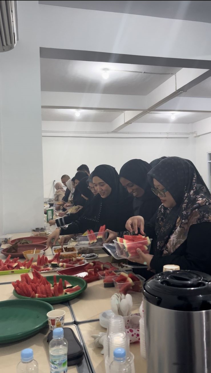 Setelah waktu berbuka tiba dilanjut dengan makan takjil dan shalat magrib berjamaah