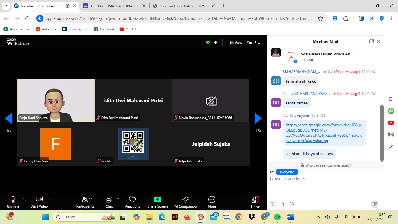 Pada 27/03/2025 dan 14/04/2025 Program Studi S1 Akuntansi Mengadakan Sosialisasi terkait Hibah Penelitian dan Pengabdian Masyarakat kepada mahasiswa akuntansi. Kegiatan ini berlangsung sebanyak 2 kali yang pertama secara online via zoom dan yang kedua secara offline di ruang kelas. Sosialisasi yang disampaikan oleh Pak Praja Hadi Saputra, S.E., M.Sc., Ak., CA. selaku Ketua Prodi S1 AKuntansi ini bertujuan untuk memberikan informasi dan arahan kepada mahasiswa tentang peluang dan proses pengajuan hibah penelitian dan PKM. Dalam sosialisasi tersebut, disampaikan beberapa hal penting terkait dengan hibah penelitian dan PKM, seperti skema hibah, tema roadmap penelitian dan PKM, alur pengerjaan proposal, serta kriteria dan persyaratan umum pengusulan hibah. Mahasiswa juga diberikan kesempatan untuk berdiskusi dan bertanya mengenai tema dan proses pengajuan hibah.