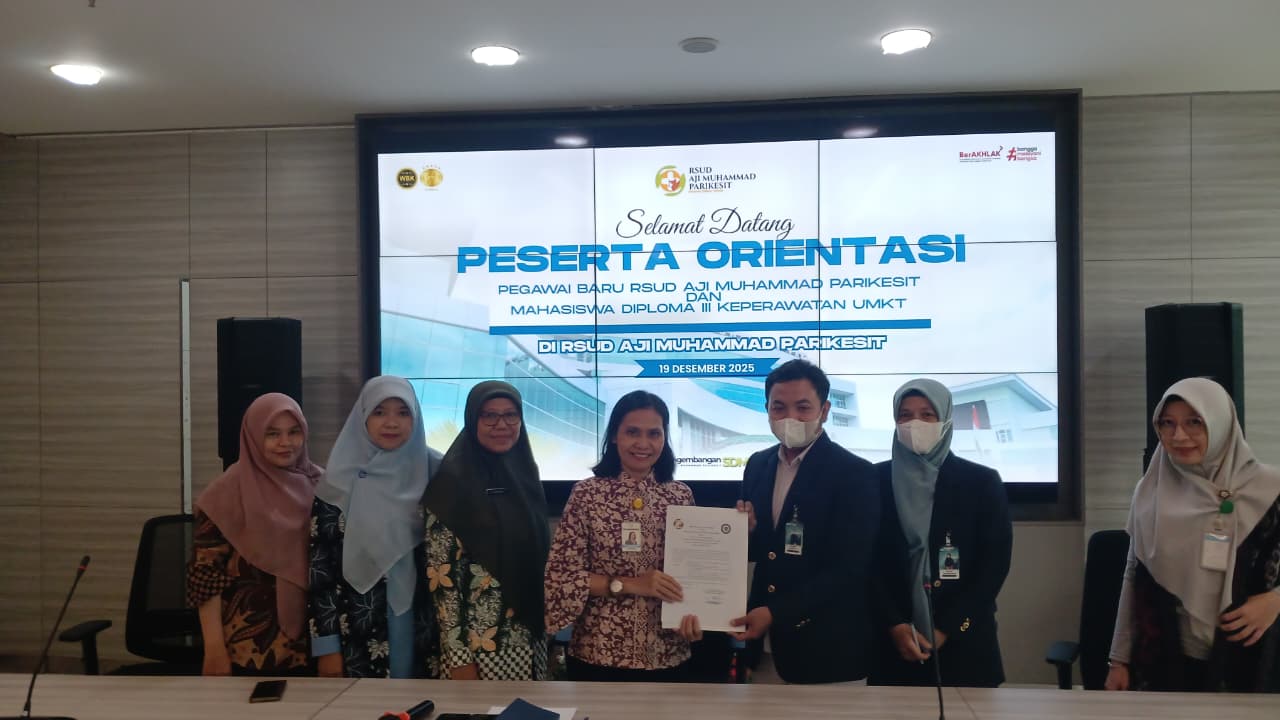 Mahasiswa Program Studi Diploma III Keperawatan Fakultas Ilmu Keperawatan Universitas Muhammadiyah Kalimantan Timur (UMKT) melaksanakan kegiatan orientasi dan serah terima praktik klinik di RSUD A.M. Parikesit Tenggarong pada 19 Desember 2025.