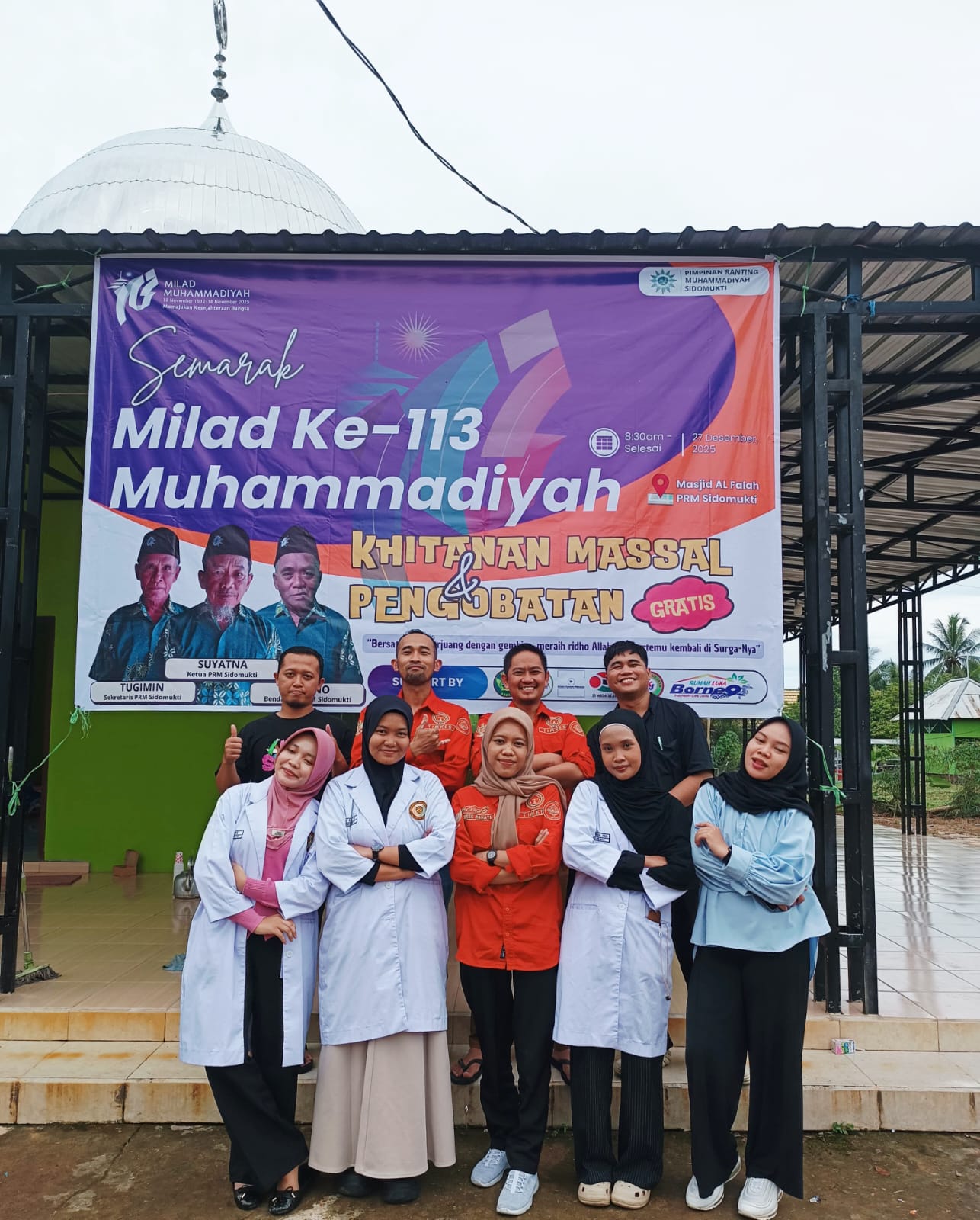 Dalam rangka Semarak Milad ke-113 Muhammadiyah, Pimpinan Ranting Muhammadiyah (PRM) Sidomukti menggelar kegiatan Khitan Massal, Pemeriksaan, dan Pengobatan Gratis yang dilaksanakan di Masjid Al Falah PRM Sidomukti, Kecamatan Sebulu, Kabupaten Kutai Kartanegara.