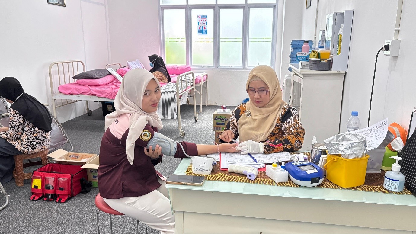 Peserta donor darah tidak hanya berasal dari kalangan mahasiswa Farmasi UMKT, tetapi juga melibatkan mahasiswa dari berbagai fakultas lainnya serta masyarakat umum yang turut serta sebagai pendonor sukarela. Sebelum proses donor dilakukan, setiap peserta menjalani pemeriksaan kesehatan awal oleh tim medis dari PMI Kota Samarinda. Pemeriksaan ini mencakup pengecekan tekanan darah, kadar hemoglobin, serta riwayat kesehatan secara umum, guna memastikan bahwa pendonor memenuhi syarat dan aman untuk mendonorkan darah. Proses donor darah berjalan dengan tertib dan lancar berkat koordinasi yang solid antara panitia pelaksana HIMAFAR UMKT dan tim medis PMI, yang secara profesional menangani setiap tahapan kegiatan.