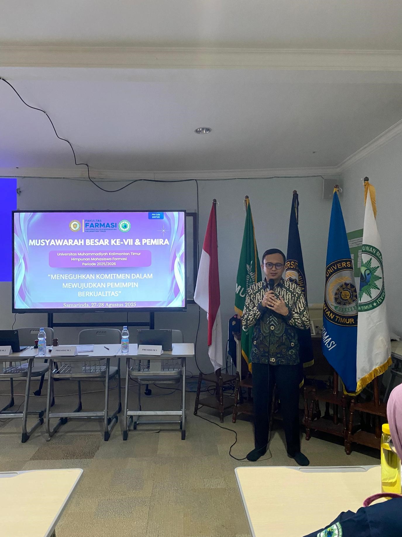 SAMARINDA- Mengakhiri masa jabatan kabinet, Himpunan Mahasiswa Farmasi (HIMAFAR) UMKT selenggarakan Musyawarah Besar (MUBES) ke-7 pada hari Rabu, tanggal 27 Agustus 2025, bertempat di Gedung A, lantai 2, ruang 2.05, Universitas Muhammadiyah Kalimantan Timur. Kegiatan ini mengusung tema “Meneguhkan Komitmen dalam Mewujudkan Pemimpin Berkualitas”, serta dihadiri oleh pembina dan para pengurus kabinet HIMAFAR UMKT Periode 2024-2025.