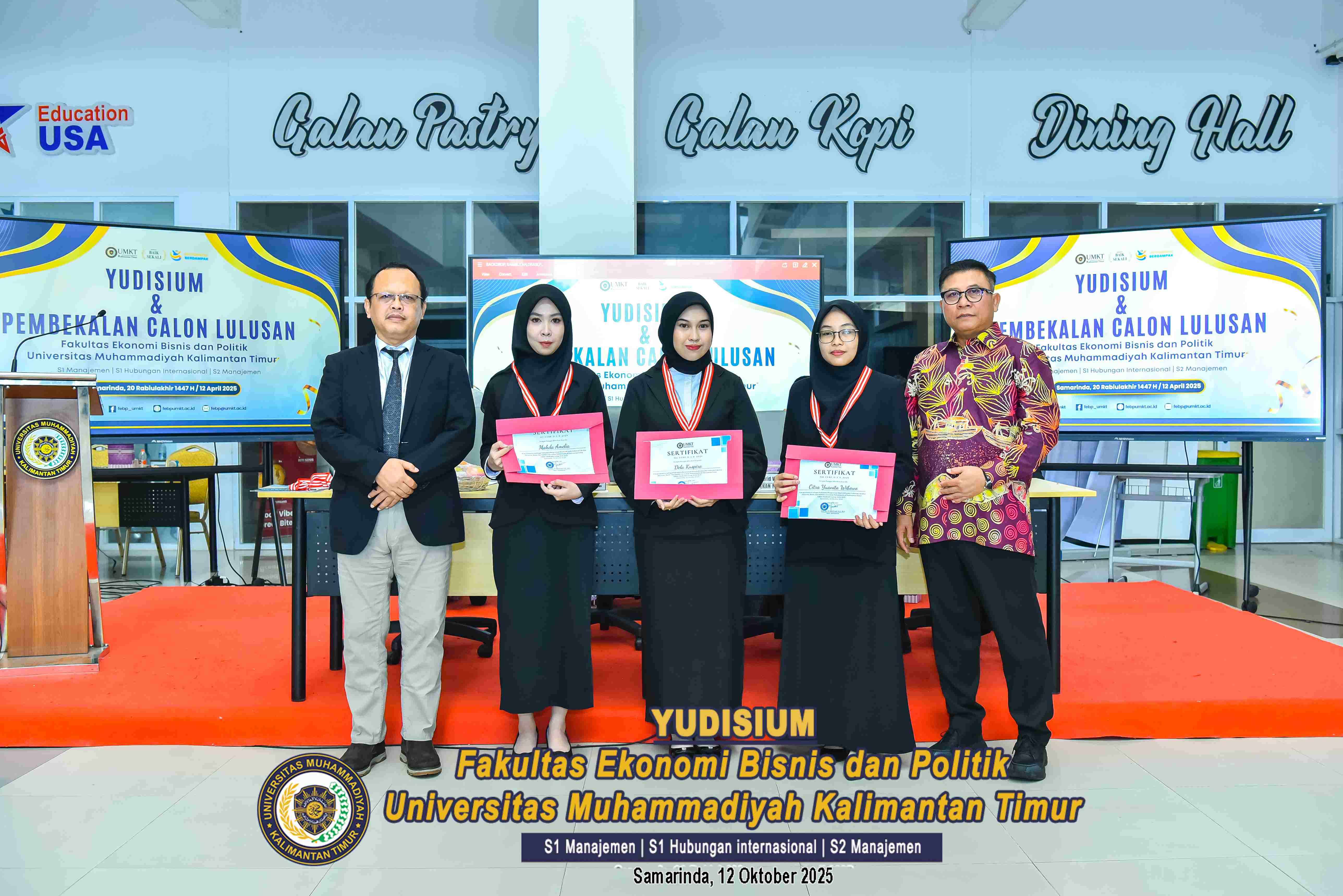 Program Studi Hubungan Internasional, Fakultas Ekonomi, Bisnis dan Politik (FEBP) Universitas Muhammadiyah Kalimantan Timur, telah melaksanakan kegiatan Yudisium Semester Genap Tahun Akademik 2024/2025. Kegiatan ini menjadi momen penuh makna bagi para mahasiswa yang secara resmi dinyatakan lulus dan siap melangkah ke jenjang profesional berikutnya.