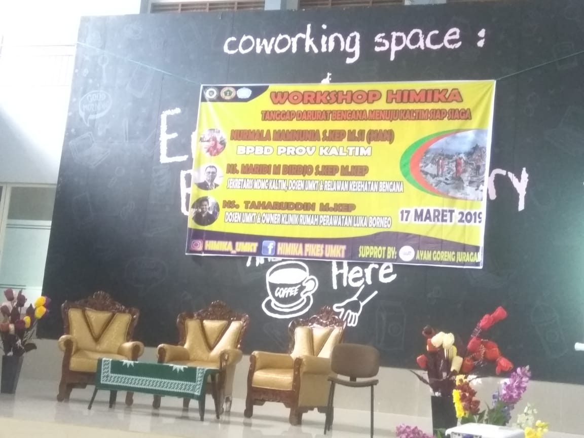 Dalam acara ini HIMIKA Fakultas Kesehatan dan Farmasi Universitas Muhammadiyah Kalimantan Timur mengadakan kegiatan workshop dengan tema Tanggap Darurat Bencana Menuju KALTIM Siap Siaga yang berlangsung pada hari Minggu, 17 Maret 2019 dengan mengundang sejumlah narasumber yang sudah ahli di bidangnya, untuk mengisi materi sebagai bekal para mahasiswa untuk tanggap dalam menghadapi bencana alam, narasumber tersebut yaitu Nurmala Mamnunia, S. Kep., M. Si (Han) (BPBD Provinsi KALTIM), Ns. Maridi Marsan Dirdjo, M. Kep (Dosen UMKT, Sekretaris MDMC KALTIM, Relawan Kesehatan Bencana), dan Ns. Taharuddin, M. Kep (Dosen UMKT, Owner Klinik Rumah Perawatan Luka Borneo).