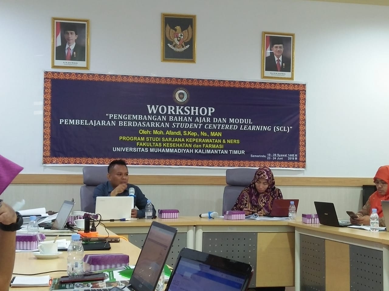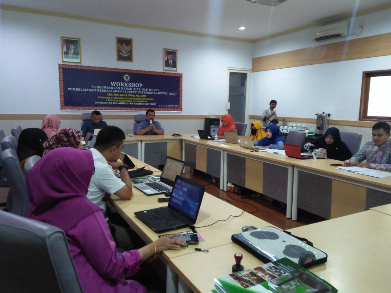 Progam Studi S1 Ilmu Keperawatan dan Ners Universitas Muhammadiyah Kalimantan Timur menggelar Workshop “Pengembangan Bahan Ajar dan Modul Pembelajaran Berbasis Student Centered Learning (SCL)” dengan narasumber oleh Bapak Moh. Afandi, S.Kep., Ns., MAN. Workshop digelar di Ruang Rapat Gedung C Universitas Muhammadiyah Kaltim.