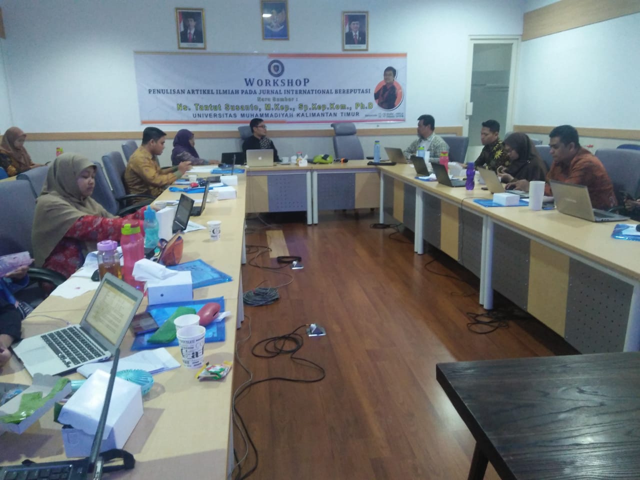 Pada hari Rabu-Kamis, 16-17 Oktober 2019 Program Studi Keperawatan Fakultas Kesehatan dan Farmasi Universitas Muhammadiyah Kalimantan Timur mengadakan kegiatan Workshop Penulisan Artikel Ilmiah pada Jurnal Internasional Bereputasi yang dilaksanakan di Samarinda Kampus UMKT. Kegiatan ini disambut baik dan dibuka langsung oleh Dekan Fakultas Kesehatan dan Farmasi UMKT dalam hal ini diwakili oleh Sekretaris Dekan yaitu Bapak Ns. Maridi Marsan Dirdjo, M. Kep.