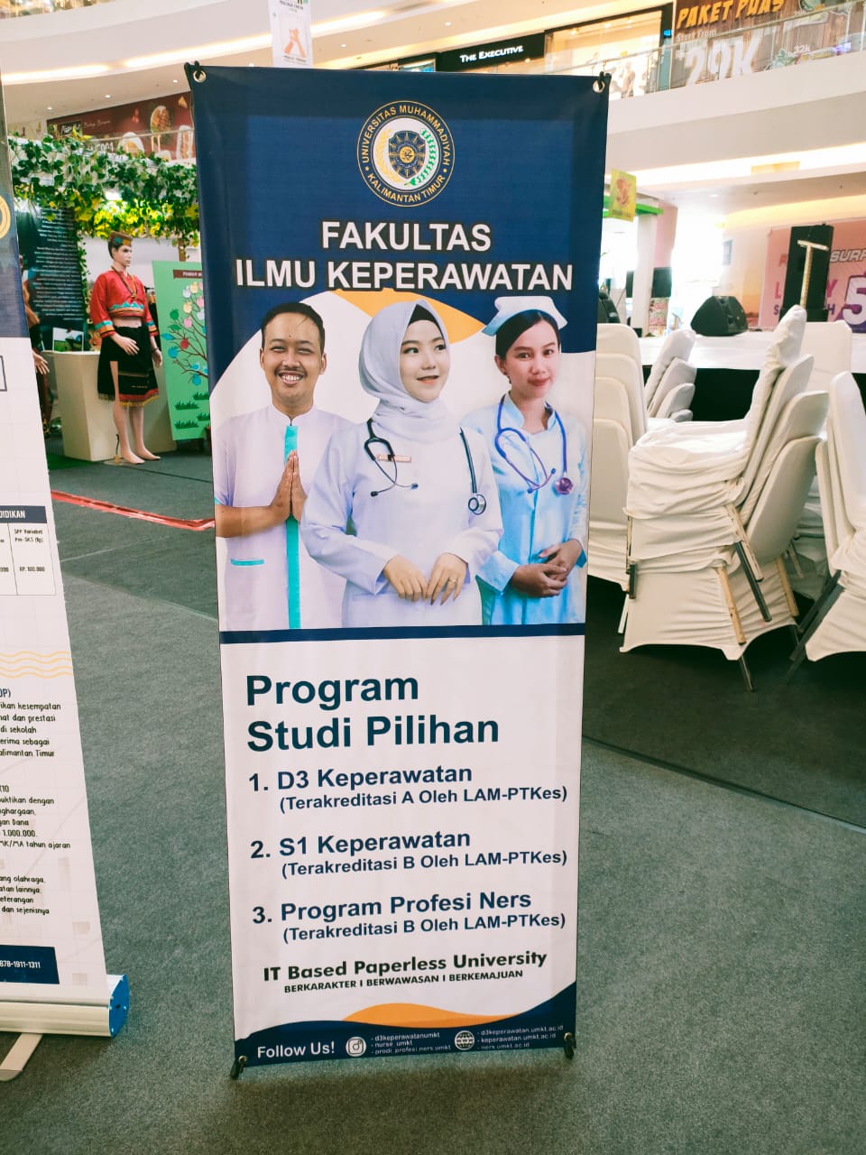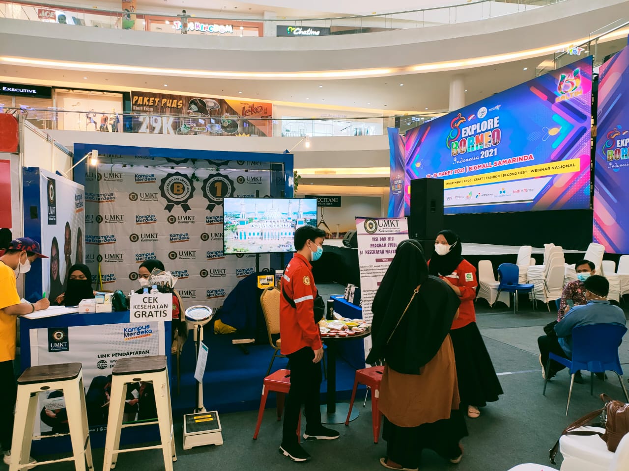 Program studi S1 Keperawatan ikut terlibat dalam kegiatan Explore Borneo Indonesia 2021 yang diselenggarakan di Big Mall Samarinda mulai tanggal 15-19 Maret 2021. Berbagai aktivitas ada di sana, seperti pentas seni, cek kesehatan dan konsultasi gratis, info pendaftaran mahasiswa baru dan banyak lagi keterlibatan dari prodi maupun fakultas lainnya yang ada di UMKT.