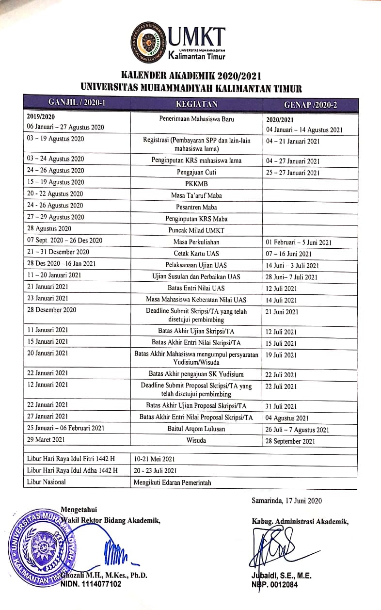 KALENDER AKADEMIK UMKT TA 2020/2021