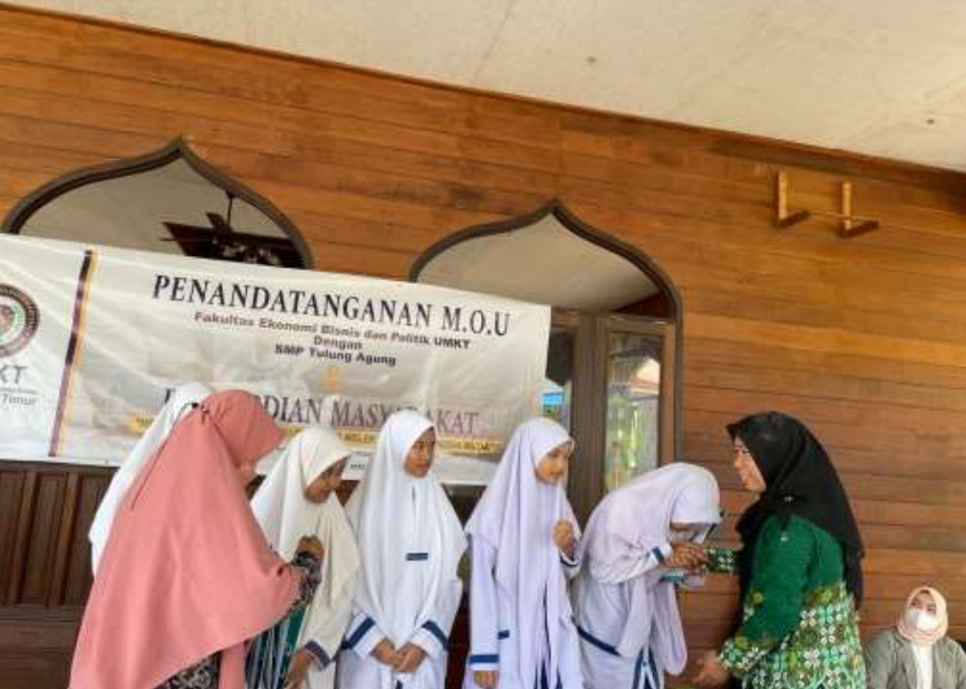 Pentingnya peranan pelajar untuk menghadapi masa depan, sehingga harus dibekali dan dipersiapkan edukasi mengenai kewirausahaan. Jiwa kewirausahaan (entrepreneur) pada jenjang pendidikan dasar adalah dengan mengembangkan sifat mandiri, kreatif, kepemimpinan dan kerja keras. Untuk meningkatkan dan mempersiapakan hal tersebut dilakukan sosialisasi atau penyuluhan di Yayasan Pondok Pesantren Az-Zahra (SMP Tulung Agung) di Jl. Poros Samarinda -Tenggarong Gg. Langsat RT. 002 Desa Jembayan, Jembayan, Loa Kulu, Kutai Kartanegara. Sosialisasi dilaksanakan pada tanggal 28 Maret 2022.