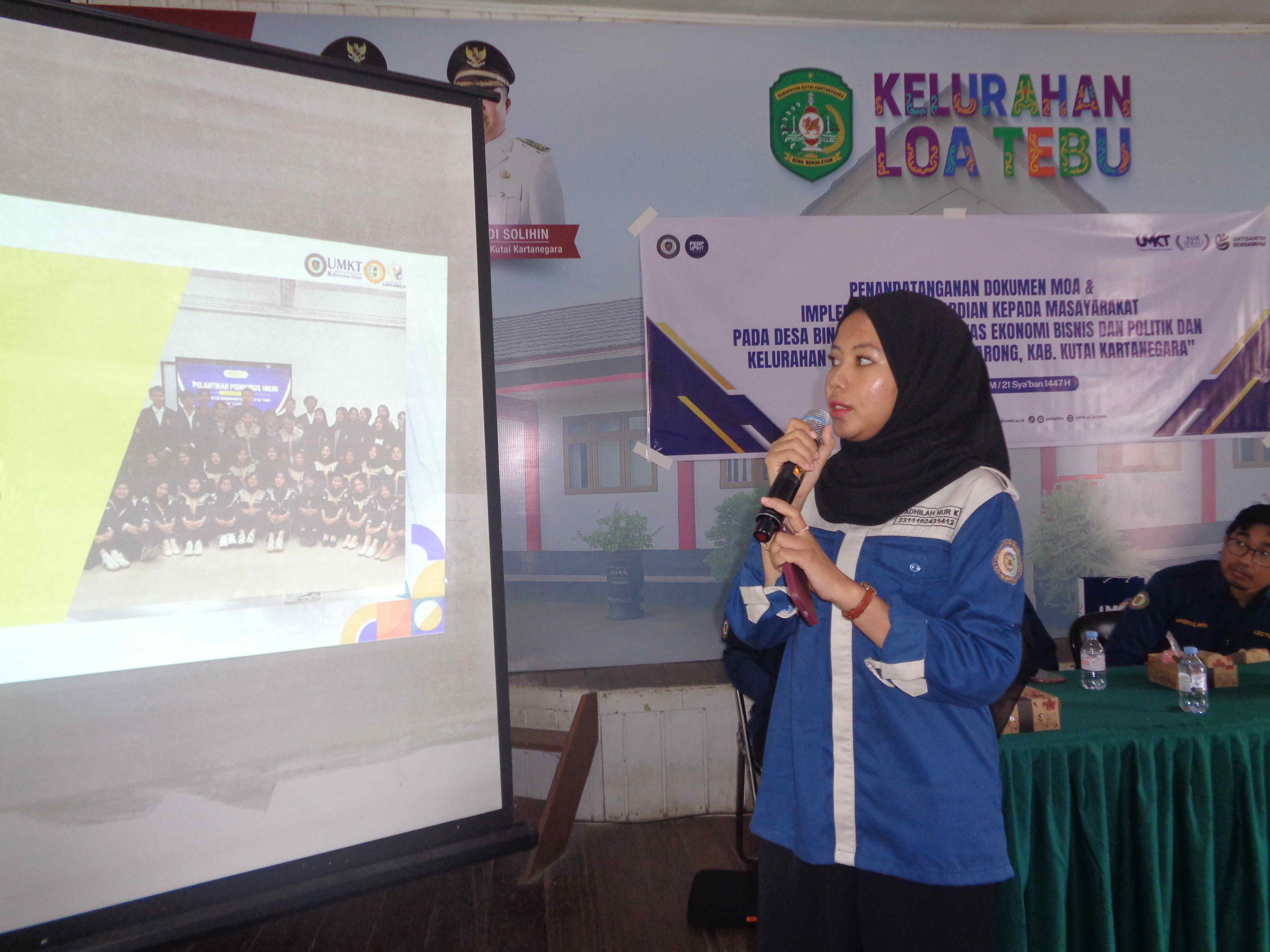 Kegiatan penandatanganan MoA dan implementasi pengabdian kepada masyarakat ini menjadi langkah awal dalam membangun sinergi berkelanjutan antara FEBP UMKT dan Kelurahan Loa Tebu demi terciptanya pengembangan masyarakat yang inklusif dan berkelanjutan.