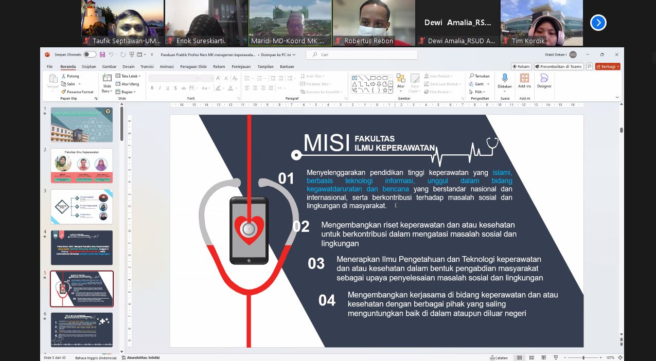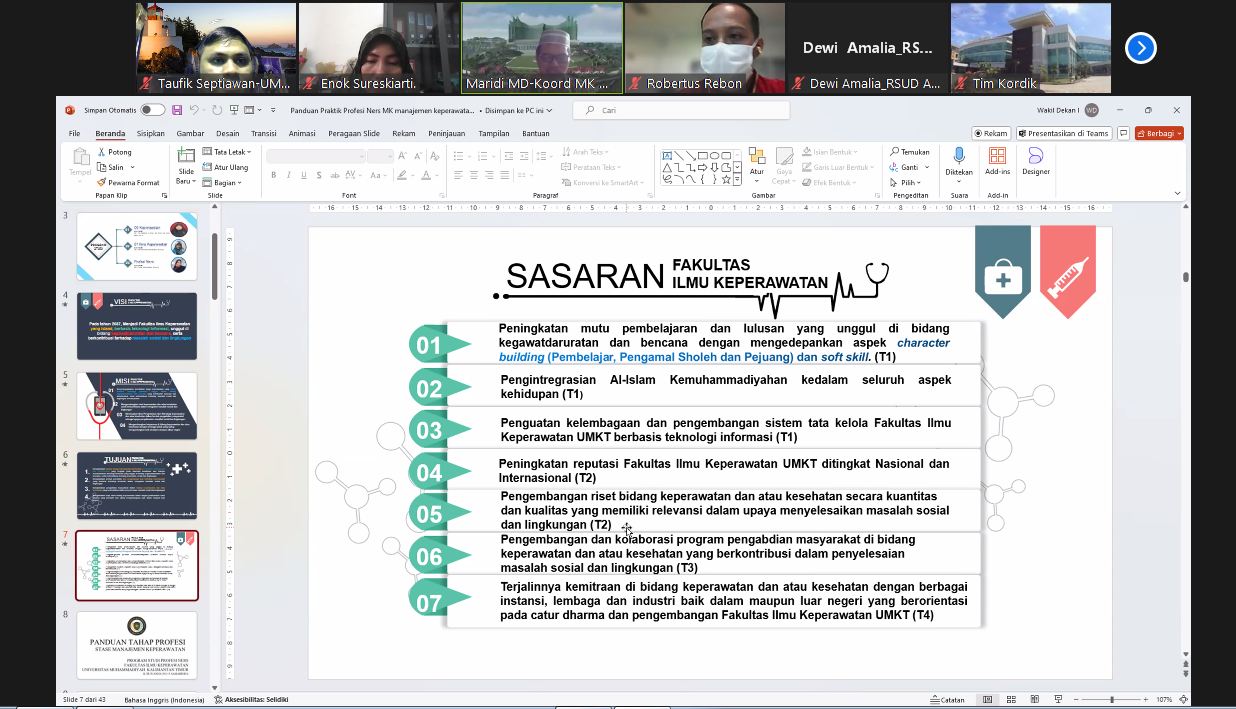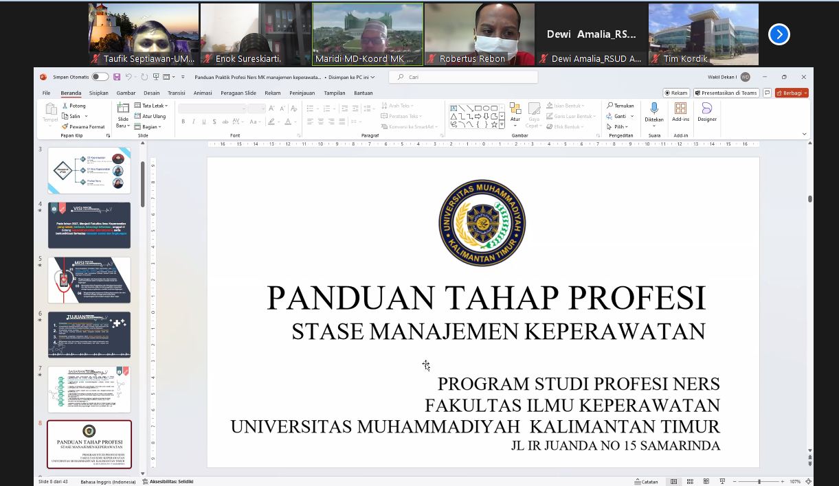 Prodi Profesi Ners Kembali Melakukan Kegiatan Apersepsi dengan Rumah Sakit A.M Parikesit Tenggarong dalam rangka persiapan praktik Mahasiswa Profesi Ners, pada kegiatan tersebut juga dilakukan penyampaian Visi dan Misi FIK UMKT, kegiatan ini adalah rutinitas sebelum mahasiswa terjun ke lahan praktik agar terciptanya hubungan dan kerja sama yang baik antara Institusi pendidikan Profesi Ners dengan lahan praktik