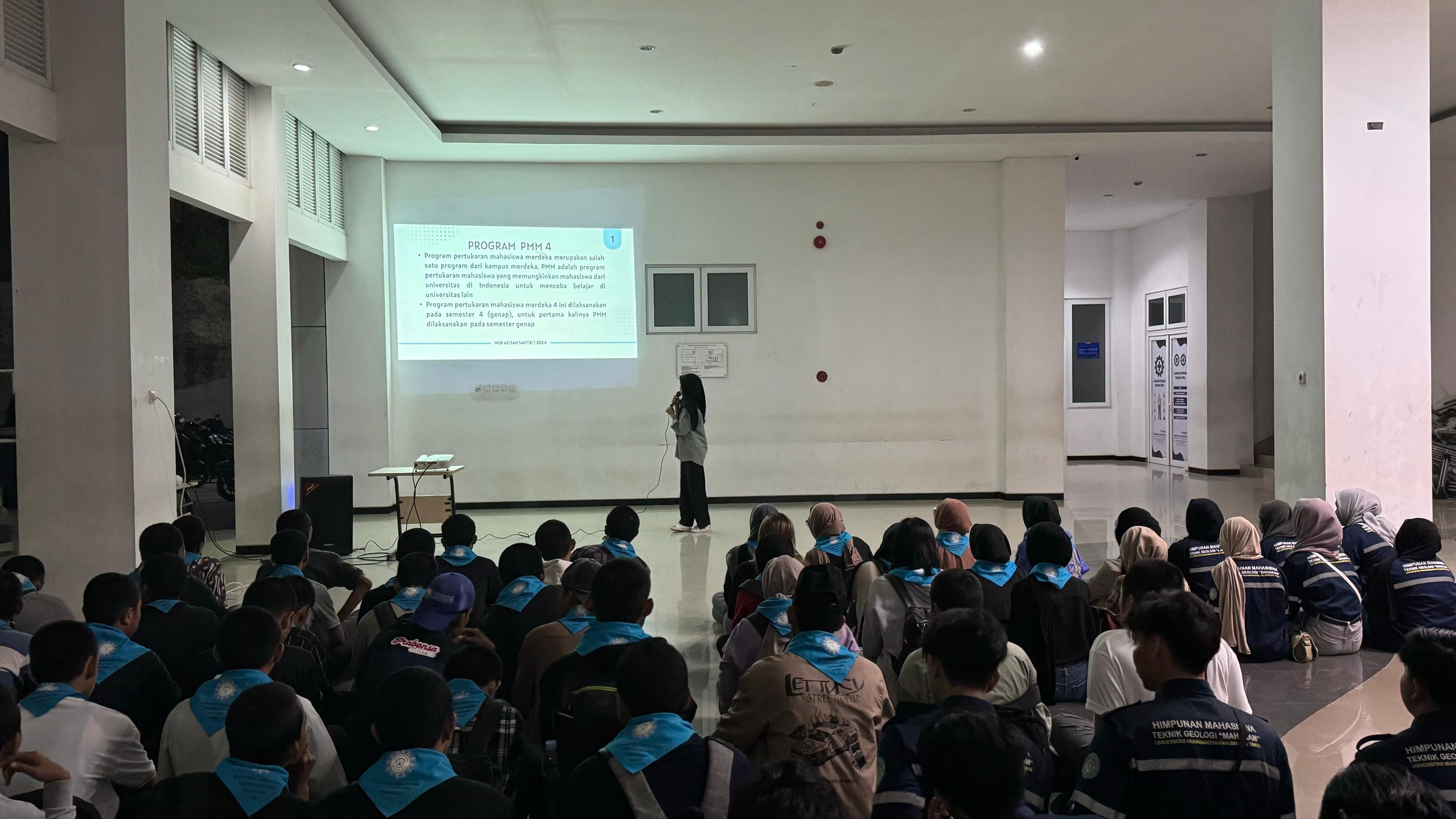 Universitas Muhammadiyah Kalimantan Timur (UMKT), 25 Oktober 2024 – Himpunan Mahasiswa Teknik Geologi (HMTG) Mahakam Divisi Humas sukses menyelenggarakan Sharing Session dengan tema "Sharing Tentang Pertukaran Mahasiswa Merdeka (PMM)" di Lobby Gedung F UMKT. Kegiatan yang berlangsung mulai pukul 19.00 ini dihadiri oleh 45 mahasiswa Teknik Geologi UMKT yang antusias mendengarkan pengalaman Nur Azizah Safitri, mahasiswi angkatan 2022, dalam mengikuti program PMM selama satu semester.