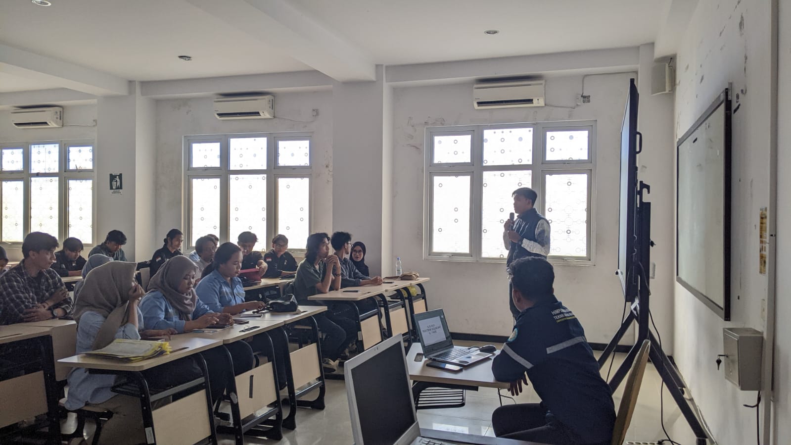Sesi berikutnya disampaikan oleh Ir. Fajar Alam, S.T., M.Ling.,IPM yang menekankan pentingnya kesiapan fisik menjelang kegiatan lapangan. Menurut Fajar, kontur medan Long Ikis cukup menantang dengan banyak area berbukit, vegetasi padat, dan potensi cuaca ekstrem. Untuk itu, mahasiswa disarankan mulai melakukan latihan fisik ringan, menjaga pola makan dan tidur, serta melakukan cek kesehatan dasar sebelum berangkat. Fajar juga mengingatkan pentingnya kedisiplinan, kerja sama, dan tanggung jawab individu selama berada di lapangan.
